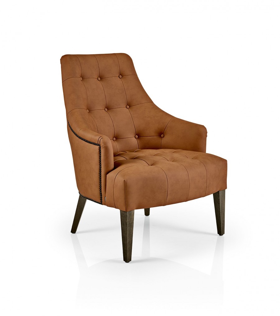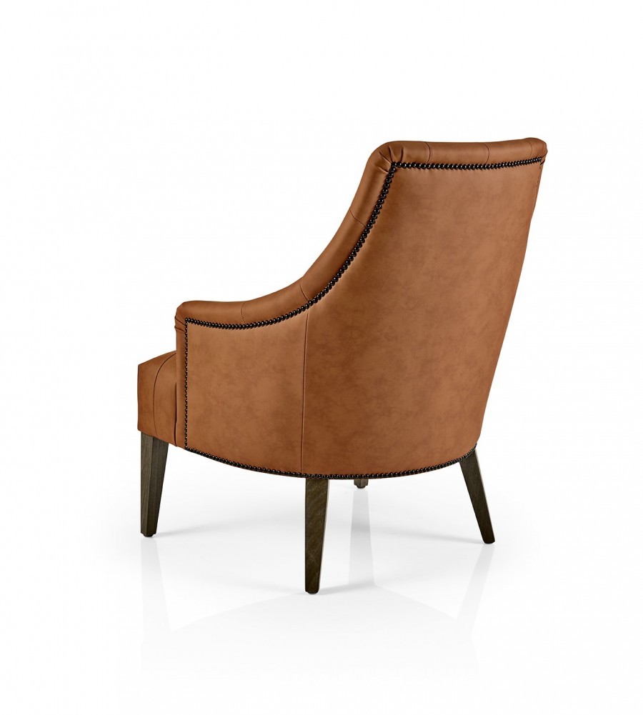 Royale Lounge Chair / Curved Back For Added Comfort / Button Back Seat And Internal Back For Added Upholstery Detailing / Can Be Upholstered In Fabric, Vinyl Or Leather / Nail Head Detailing On Outer Back In Various Metal Colour Finishes / Beech Tapered Legs / On Glides / Upcharge For Additional Wood Stain Finishes / Upcharge For Two Tone Upholstery / Ideal For All Restaurants, Hotels, Steakhouses, Country Clubs And Casinos