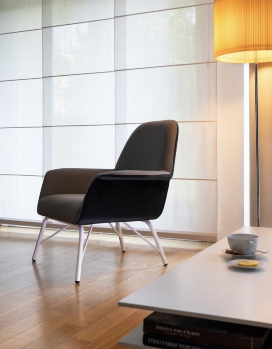 EDITION Viva Metal Lounge Chair has been designed for hospitality projects with a cost effective price point / Round metal tube / Stretcher braces for additional strength and added detail / Available in black or white painted frame standard, other colours on request / Fully Upholstered Seat and Back Standard / Ideal for Hotels and Restaurants.