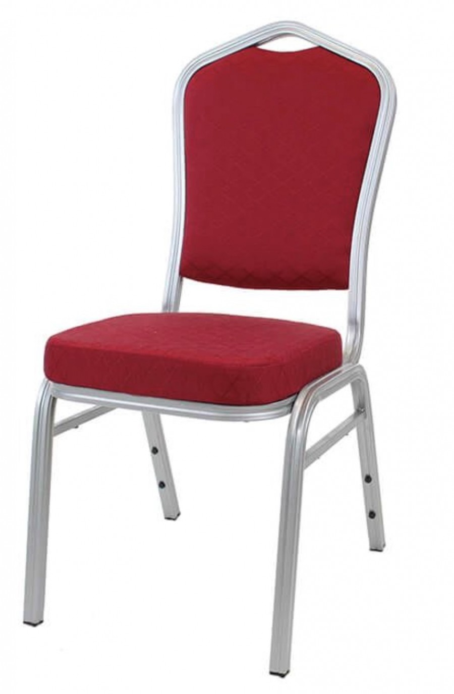 Beverley Aluminum Banquet chair / Arched back with handle / Riveted Square Tube Heavy Duty Frame / Powder coated finish / Fully welded frame for heavy contract use / Choice of frame color finishes available / Stretchers on sides for added strength / Plastic Stack Bumpers to prevent scratching / Stackable to the height of doorways or beyond / On nylon glides / Fully upholstered seat, inner and outer back in a wide choice of COM or graded in fabrics / Offers excellent comfort for prolonged periods of time / Upcharge for dolly / Ideal for all large scale hospitality venues, hotels, restaurants and conference venues.