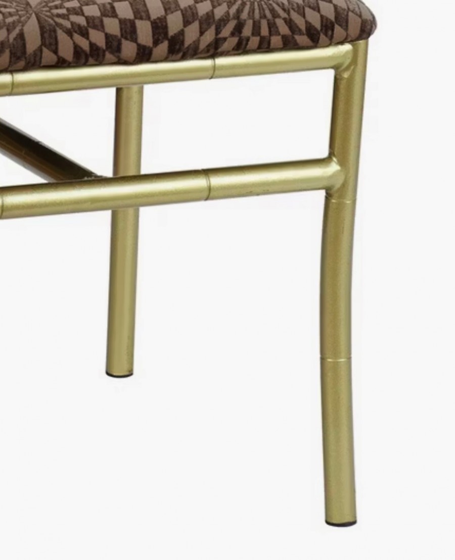 Dynasty Upholstered Banquet Chair / Aluminum frame tube with bamboo design metal finish / Choice of frame color finishes / On glides / Braced on front for added strength for contract use / Well padded upholstered seat cushion and back / Stackable on the floor 8-10 high / Up charge for dolly / Available in graded in or COM fabrics / Ideal for large scale hospitality venues, hotels, restaurants.