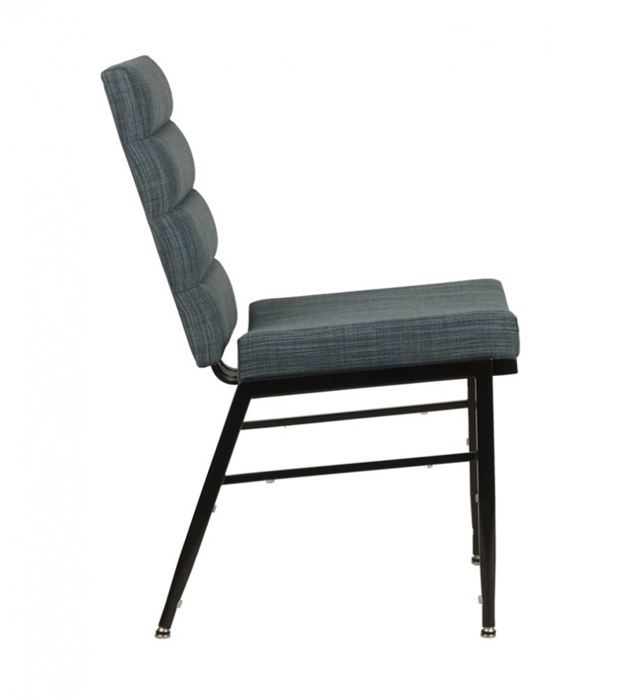 Jersey Steel Banquet Chair / Square Tube Heavy Duty Frame in steel / Powder coated finish / Tapered steel legs / Fully welded frame for heavy contract use / Choice of frame color finishes available / Stretchers on sides and under front seat for added strength / Metal glides / Plastic Stack Bumpers to prevent scratching / Stackable to the height of 10 on the floor / Fully upholstered seat, inner and outer back in a wide choice of COM or graded in fabrics / Offers excellent comfort with additional padding on seat and back for prolonged periods of time / Quilted inside back for added detail / Upcharge for dolly / Ideal for all large scale hospitality venues, hotels, restaurants and conference venues.