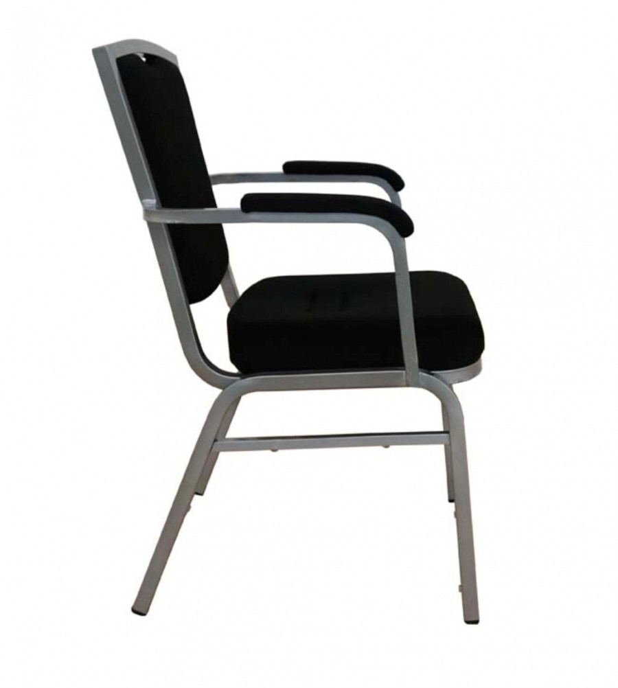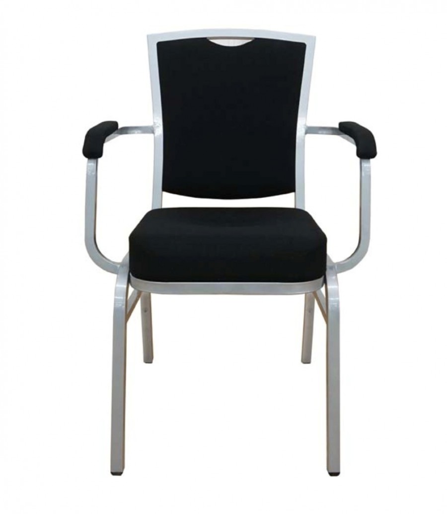 Metropole Steel Banquet Armchair / Integrated arms with upholstered arm caps for added comfort / Square Tube Heavy Duty Frame / Powder coated finish / Fully welded frame for heavy contract use / Choice of frame color finishes available / Stretchers on sides for added strength / Plastic Stack Bumpers to prevent scratching / Stackable to the height of doorways or beyond / On nylon glides / Fully upholstered seat, inner and outer back in a wide choice of COM or graded in fabrics / Offers excellent comfort for prolonged periods of time / Upcharge for dolly / Ideal for all large scale hospitality venues, hotels, restaurants and conference venues.