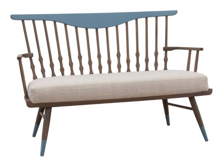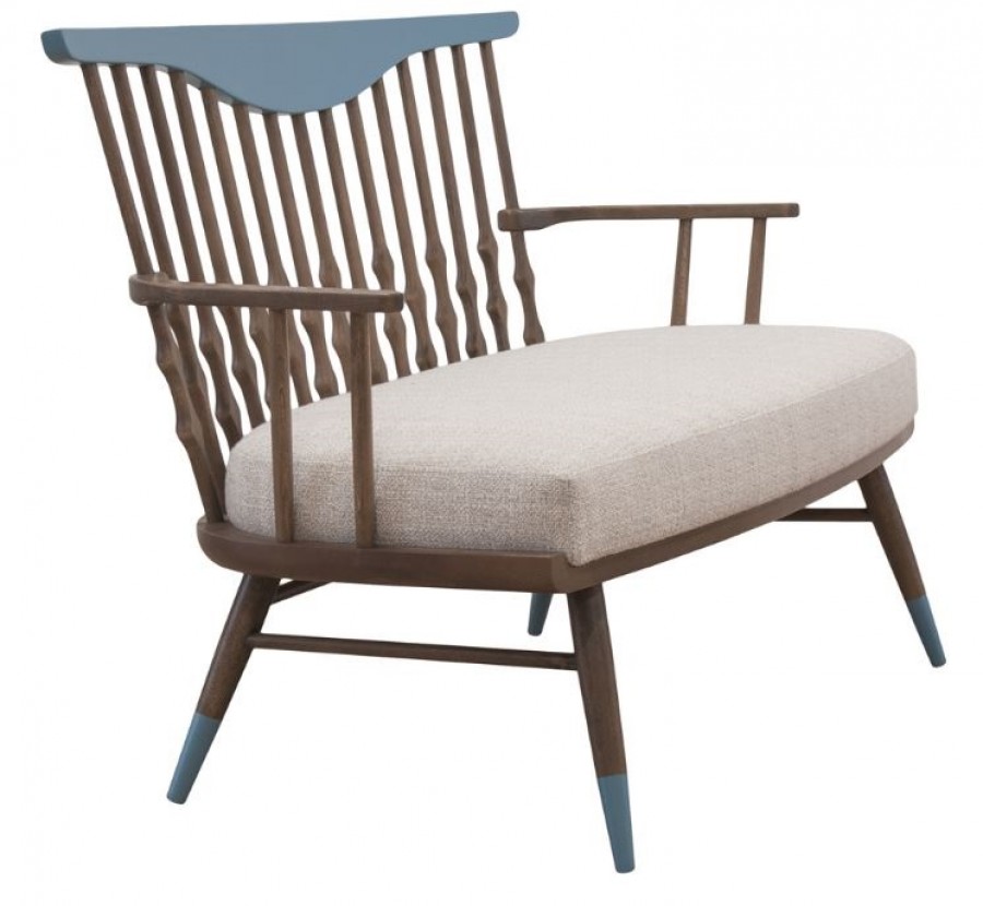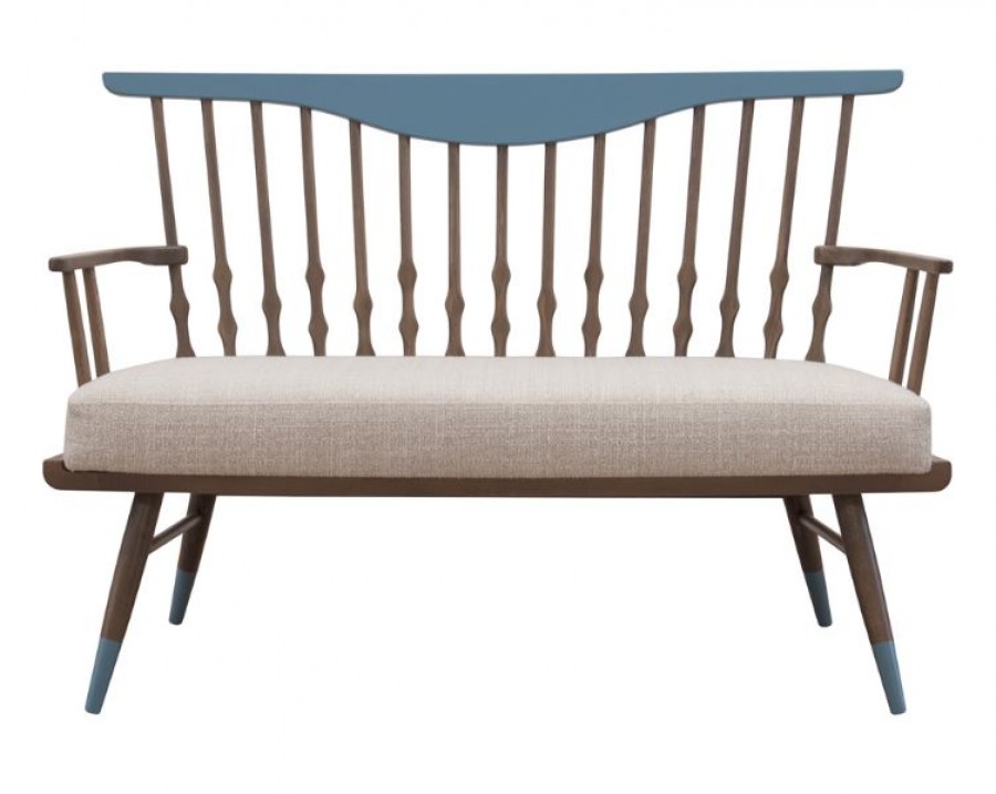 EDITION Ajax Love Seat / Beech Frame Standard / Additional Wood Stain Finishes Available / Integrated Arms / Fully Upholstered Seat / In A Wide Choice Of Fabric Options / Wooden Tapered Legs / On Glides / Braced On Sides For Added Strength / Generous Seating Proportions / Unique Rodded Back Detailing / Top Of Back And Tips Of Legs Are Available In Various Colour Options / Ideal for Coffee Shops and Restaurants