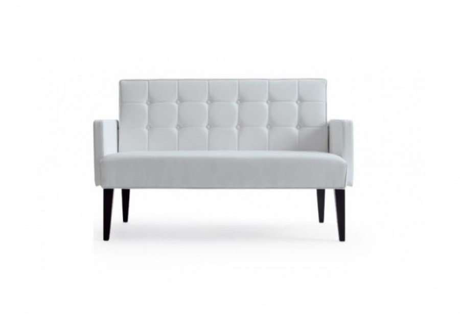 EDITION Regina D Love Seat / Beech Legs Standard / Additional Wood Stain Colour Finishes Available / Integrated Upholstered Arms / Fully Upholstered Seat And Back Standard / Buttoned Back For Added Detailing / Ideal for Hotels, Restaurants And Lobby Areas