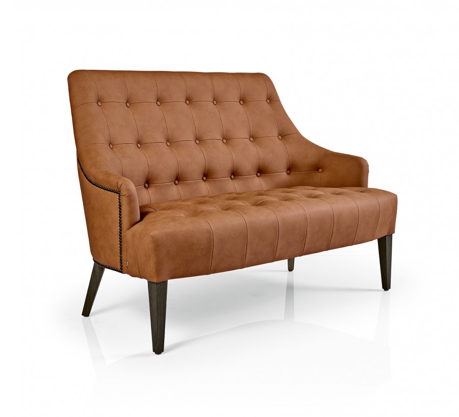 Royale Loveseat / Curved Back For Added Comfort / Button Back Seat And Internal Back For Added Upholstery Detailing / Can Be Upholstered In Fabric, Vinyl Or Leather / Nail Head Detailing On Outer Back In Various Metal Colour Finishes / Beech Tapered Legs / On Glides / Upcharge For Additional Wood Stain Finishes / Upcharge For Two Tone Upholstery / Ideal For Hotels, Country Clubs And Casinos