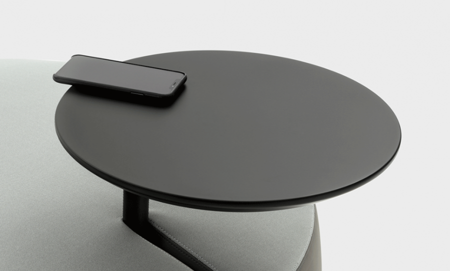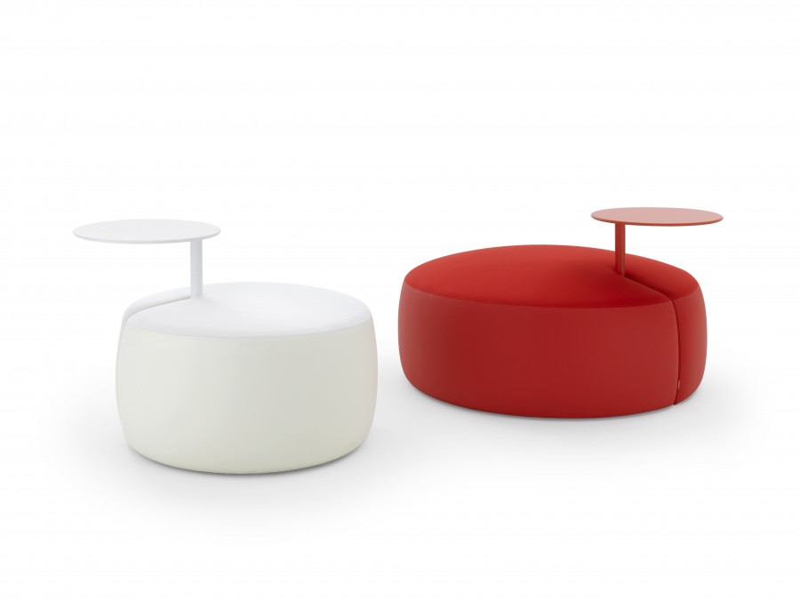Biscayne is a Collection of Small & Large Ottomans Available in Three Sizes / Indoor Only / Moulded Polyurethane Shell / On Glides / Light Weight Design / Fully Upholstered / Upcharge For Writing Table / Upcharge for Wireless Charger in Writing Table / Ideal For Breakout Areas, Universities, Hotels, Lobby And Airport Lounge Areas