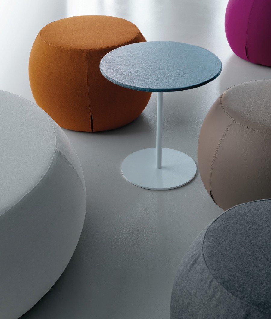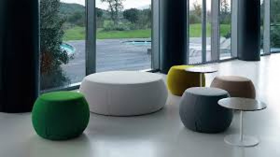 Fremont is a Collection of Small & Large Ottomans in Soft Shapes / Moulded Polyurethane / On Glides / Light Weight Design / Ideal For Breakout Areas, Universities & Hotels & Lobby Areas / Featured with Malmo Multi Purpose Tables in Various Table Top Finishes & Sizes