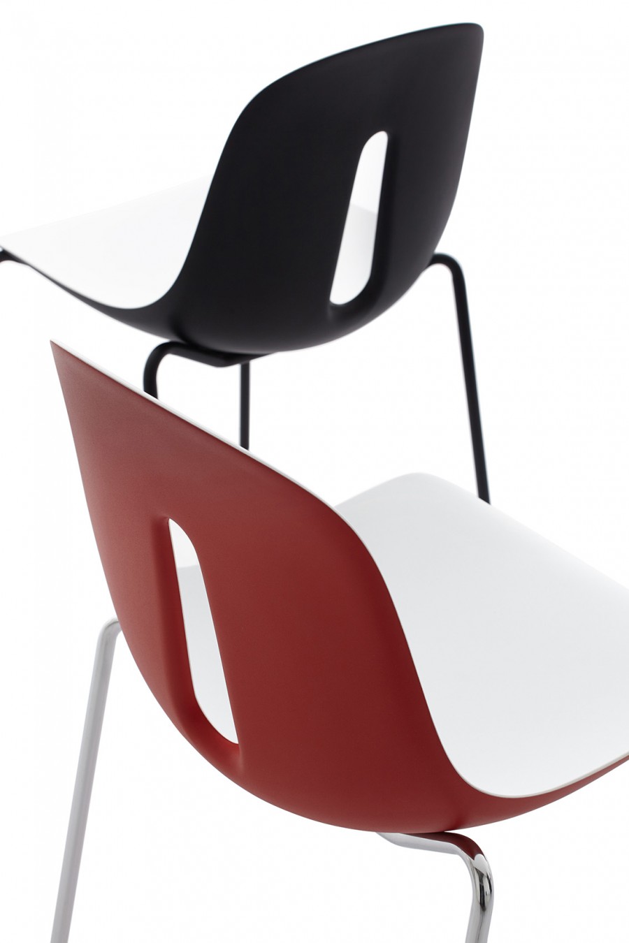 Bonn Chair / 4 Leg / With or Without Arms / Stylish & Contemporary Design / Polished Chrome Round Tube Arms & Frame / Black or White Painted Frame None Cost Option / Stackable x 6 / Polypropylene One Piece Scooped Shell / Various Shell Colour Options / Open Slot in Back for Detail / Shell One Colour STD / Upcharge Shell Two Tone / Matching Counter & Bar Height Stools / Upcharge Fully Upholstered in a Wide Choice of Fabrics & Vinyls / Ideal for Hospitality Environments for Corporate & Leisure Applications