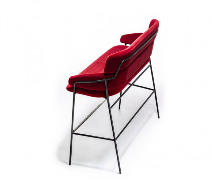 Delano Two Seater 4 Leg Bar Stool / Upcharge Polished Chrome Round Tube Standard / Black or White Painted Frame Standard / Upcharge Brass (Copper Finish Available On Request, Minimum Order Quantities Apply) / Integrated Arms / Offers Excellent Back Support / Unique Frame Design For Added Detail in Three Sections / Fully Upholstered Ideal For Restaurants & Corporate & All Hospitality Venues & Cocktail Bars & Boutique Hotel Lobby & Bedroom Areas Delano is now available in a variety of new fabrics enhances the range’s possibilities