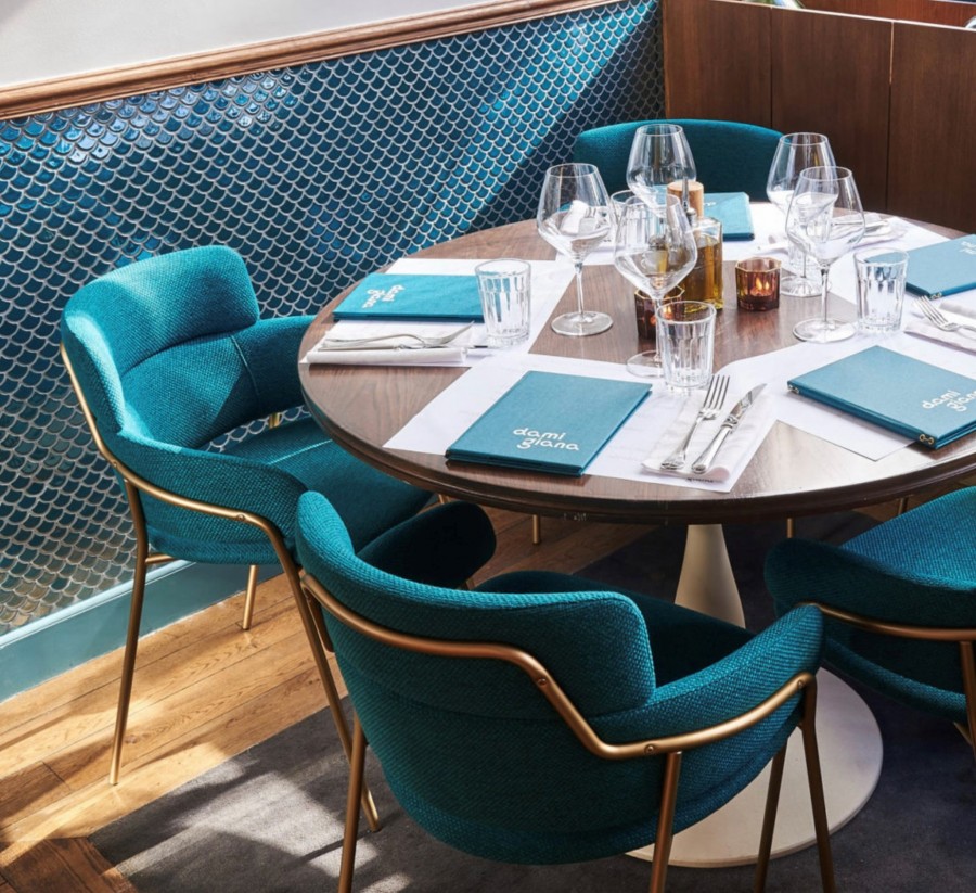 Delano 4 Leg Chair / Available in Standard and Extra Large Sizes / Upcharge Polished Chrome Round Tube Standard / Black or White Painted Frame Standard/ Upcharge Brass (Copper Finish On request, Minimum Order Quantities Apply) / Integrated Arms / Generous Proportioned Seat / Offers Excellent Back Support / Unique Frame Design For Added Detail in Three Sections / Fully Upholstered Ideal For Restaurants & Corporate & All Hospitality Venues & Cocktail Bars & Boutique Hotel Lobby & Bedroom Areas Delano is now available in a variety of new fabrics enhances the range’s possibilities