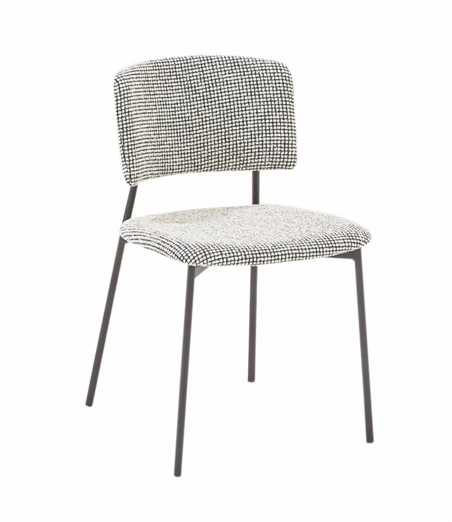 Jasper Standard Chair / Plywood Seat and Back Fully Upholstered / On Glides / Round Tube Frame Black or White Standard / Upcharge for non-standard painted finishes / Upcharge for Brass and Chrome Finish / Suitable for Contract Use / Well Padded Seat & Back / Fully Upholstered Seat and Back in Fabric, Vinyl or Leather / Ideal For Al Hospitality and Work Place Environments