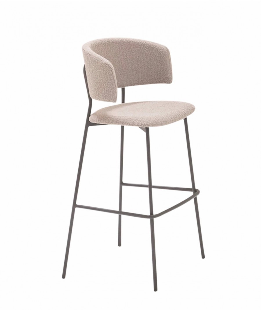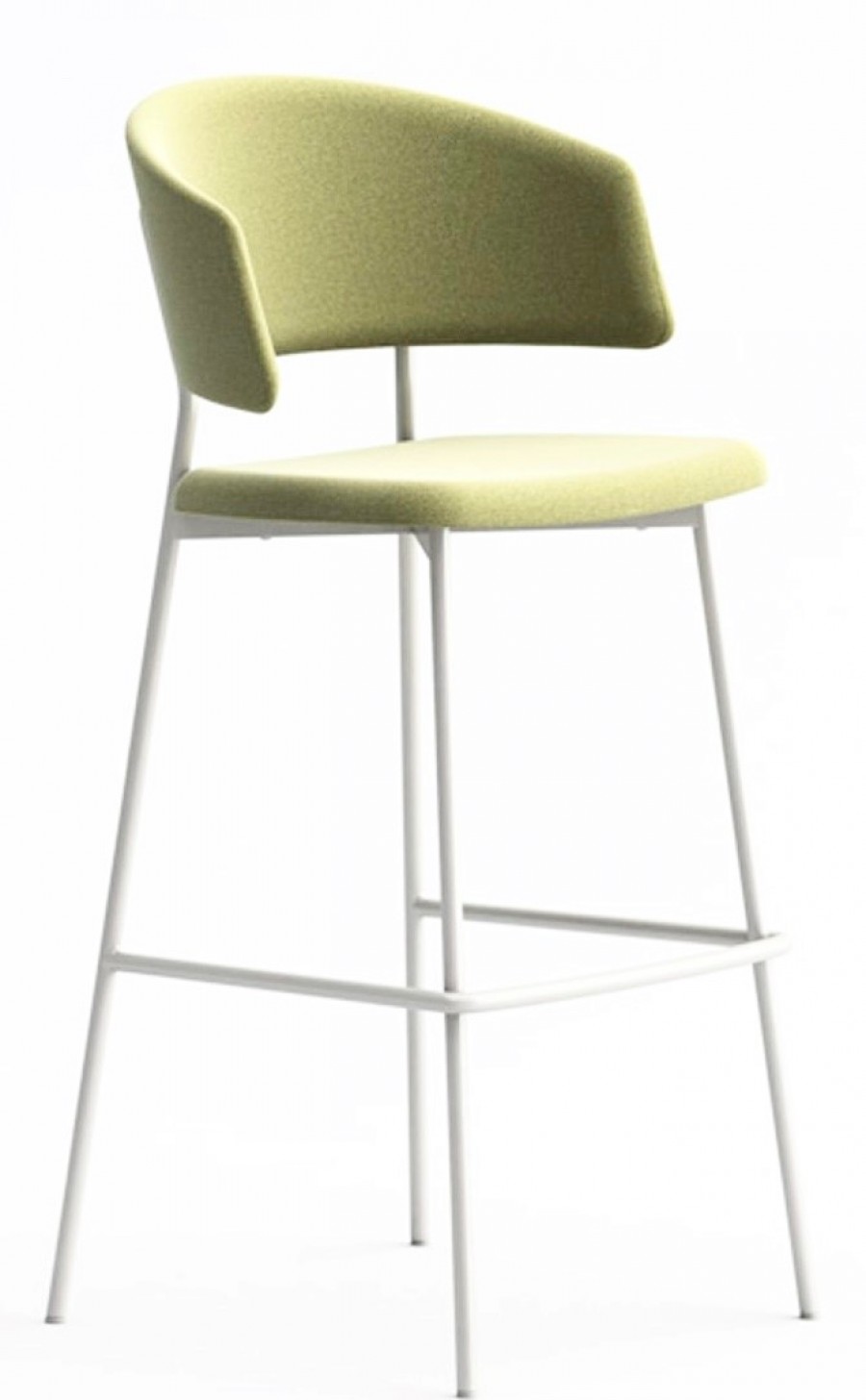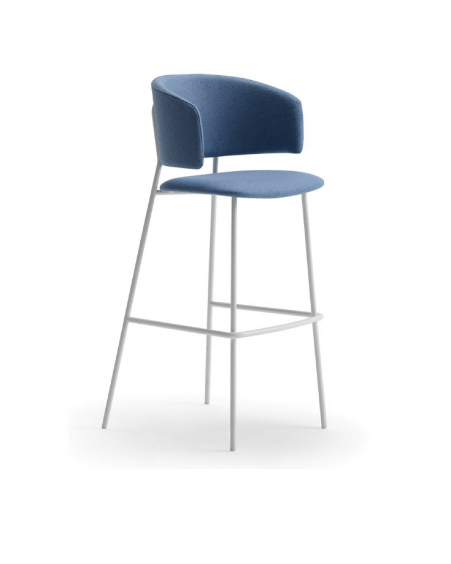 Jasper Wrap Bar Stool / Plywood Seat and Back Fully Upholstered / On Glides / Round Tube Frame Black or White Standard / Upcharge for non-standard painted finishes / Upcharge for Brass and Chrome Finish / Suitable for Contract Use / Well Padded Seat & Back / Fully Upholstered Seat and Back in Fabric, Vinyl or Leather / Ideal For Al Hospitality and Work Place Environments