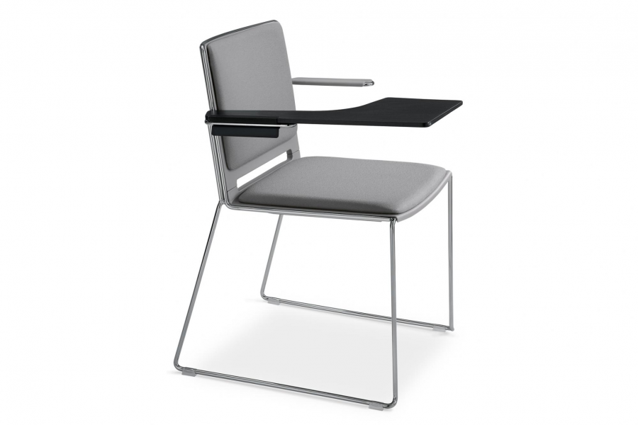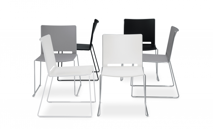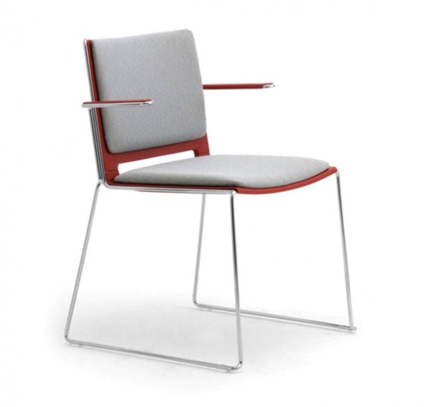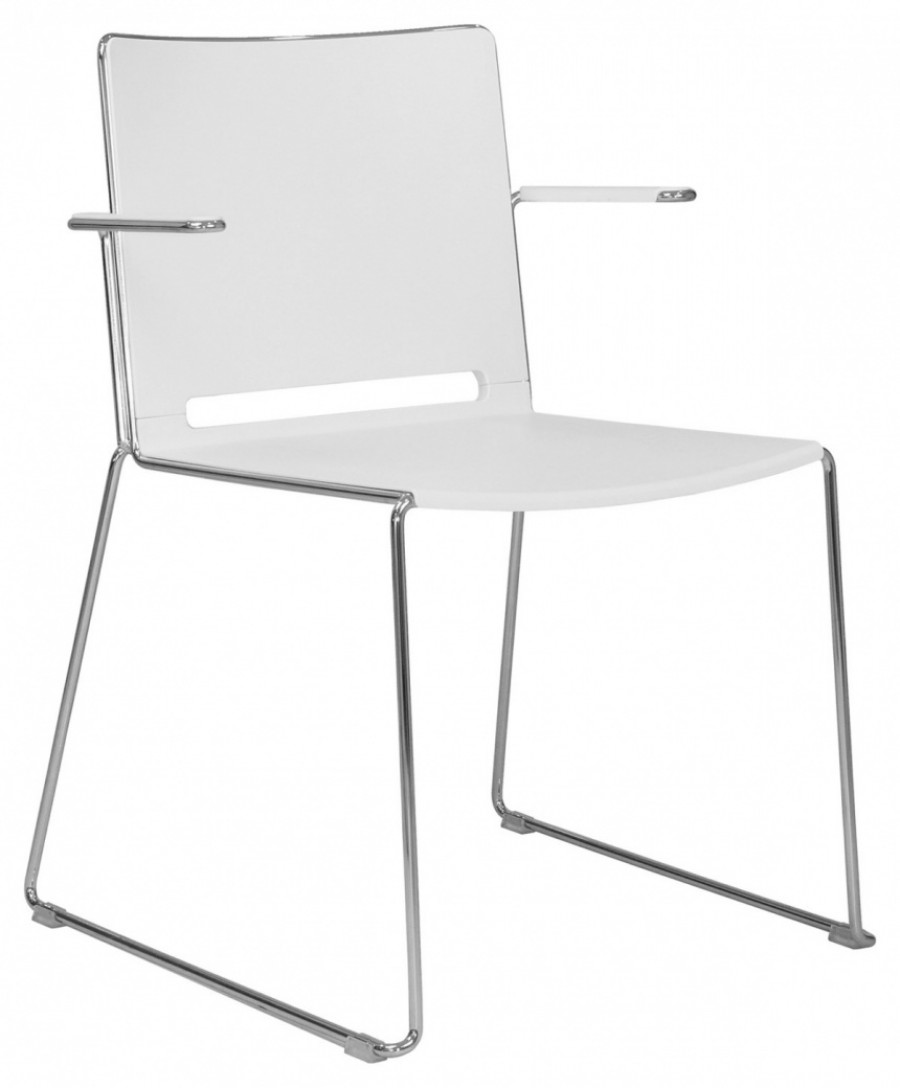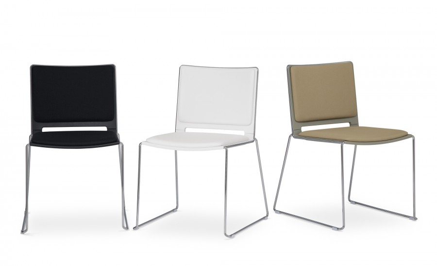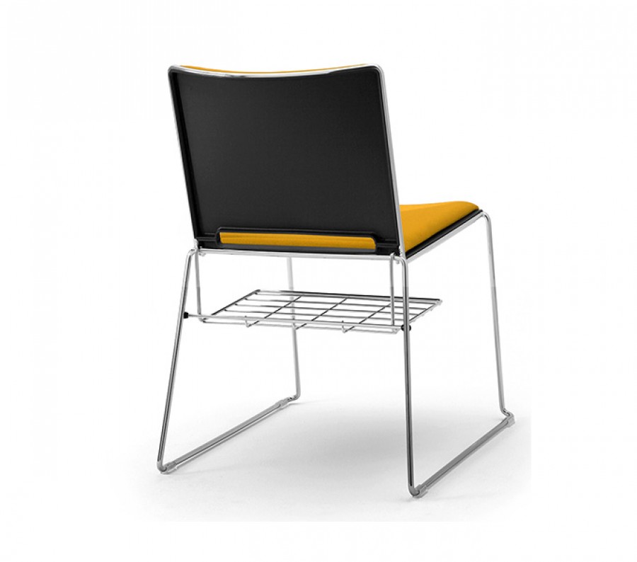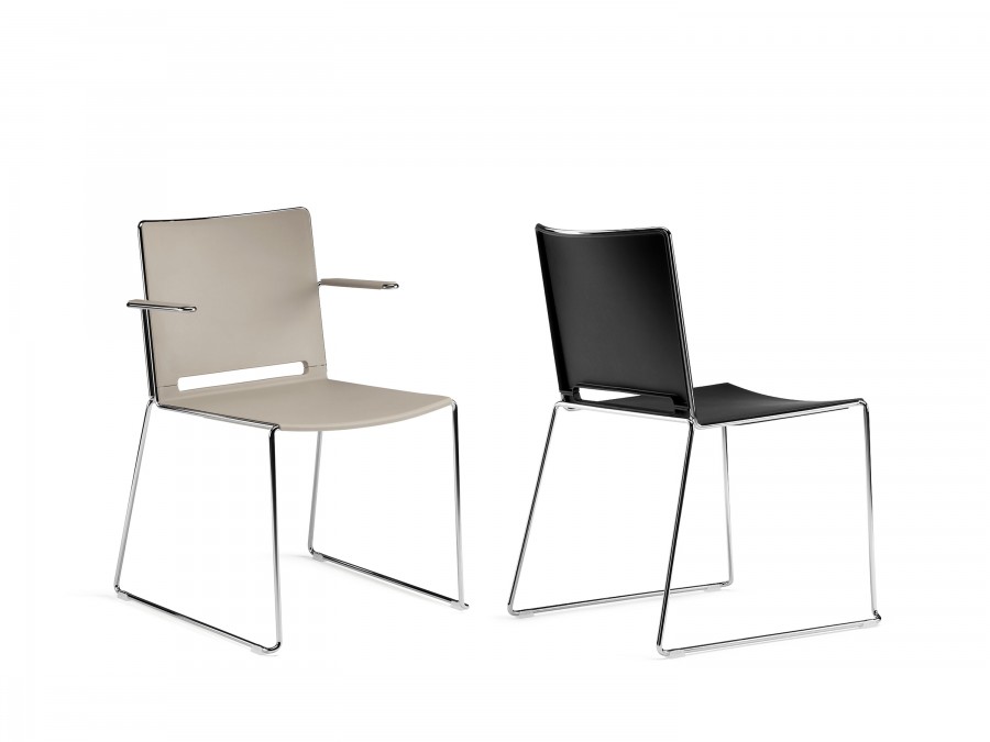 LAX Multi Purpose Chair / Sled Frame / With or Without Arms / Family of Chairs with Epoxy Coated or Chrome Plated Metal Frame / Injection Moulded Polypropylene Seat & Back with Anti UV Treatment / Seven Polypropylene Colour Finishes / Black, White, Grey Painted None Cost Option / Metal Rod Frame around Side & Back for Added Strength & Stability for Heavy Contract Use / Upcharge for polished chrome frame / On Nylon Glides / Upcharge for Seat & Back Pads in Upholstered Fabrics & Vinyls / Upcharge for Various Accessories Writing Table / Magazine Holder / Linking / Dolly / Stackable x 20 Floor & x 40 Dolly (without pad) / Matching Counter & Bar Height Stools / Ideal for Conference & Education Venues / Training & Seminar Rooms