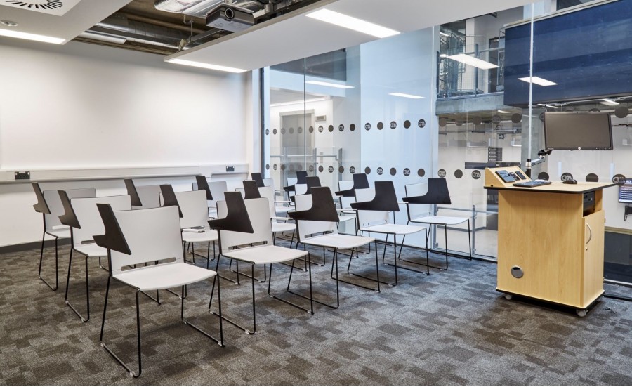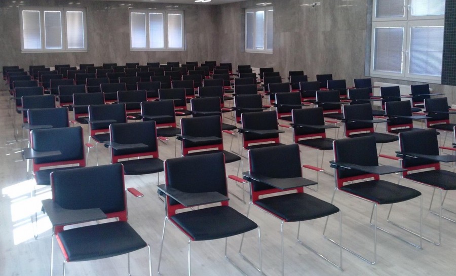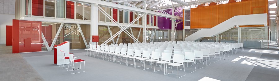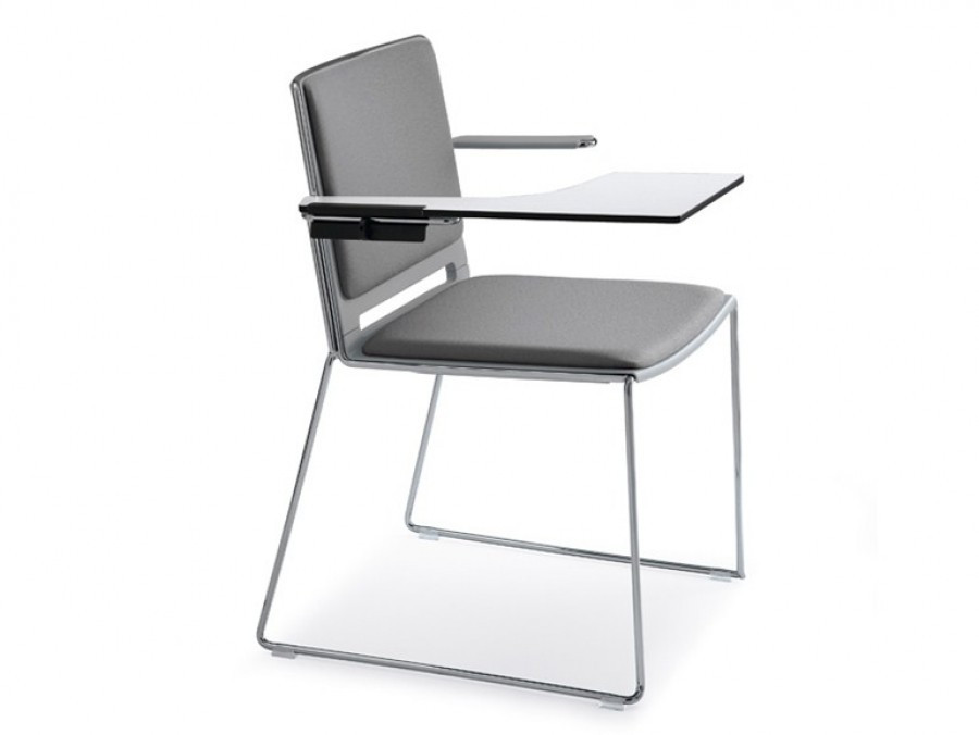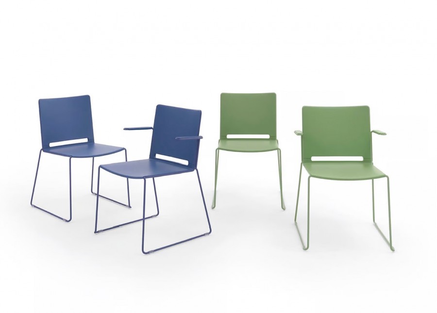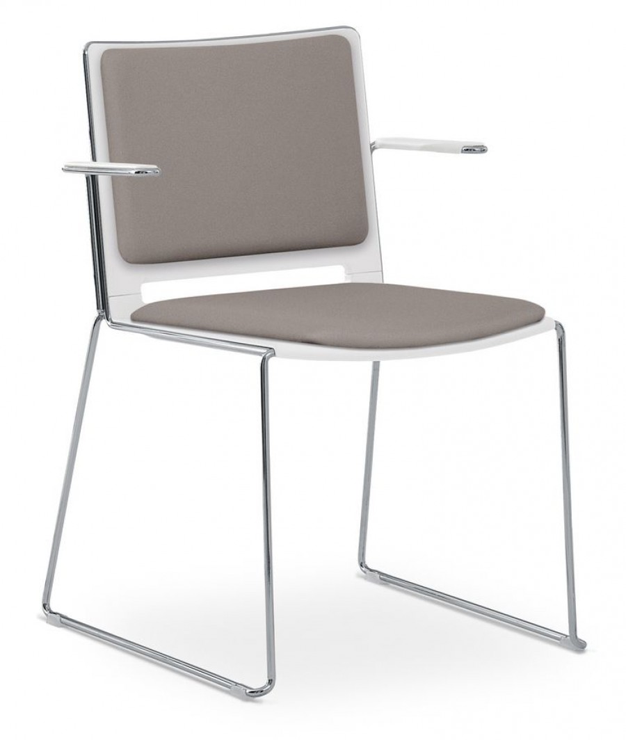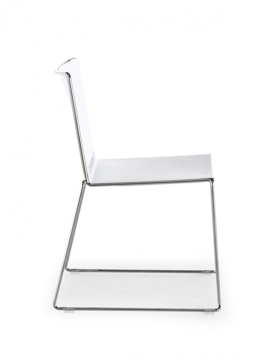 LAX Multi Purpose Chair / Sled Frame / With or Without Arms / Family of Chairs with Epoxy Coated or Chrome Plated Metal Frame / Injection Moulded Polypropylene Seat & Back with Anti UV Treatment / Seven Polypropylene Colour Finishes / Black, White, Grey Painted None Cost Option / Metal Rod Frame around Side & Back for Added Strength & Stability for Heavy Contract Use / Upcharge for polished chrome frame / On Nylon Glides / Upcharge for Seat & Back Pads in Upholstered Fabrics & Vinyls / Upcharge for Various Accessories Writing Table / Magazine Holder / Linking / Dolly / Stackable x 20 Floor & x 40 Dolly (without pad) / Matching Counter & Bar Height Stools / Ideal for Conference & Education Venues / Training & Seminar Rooms
