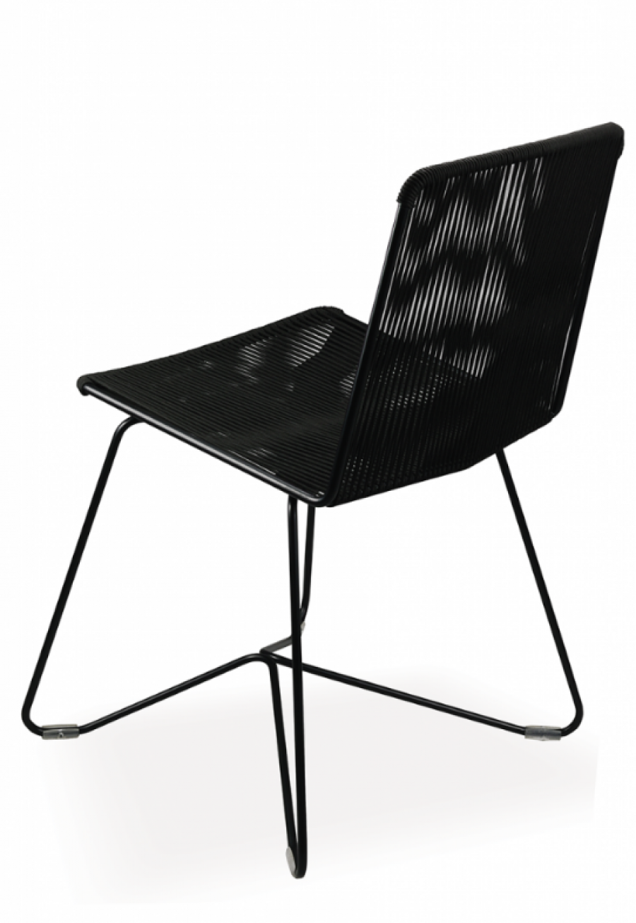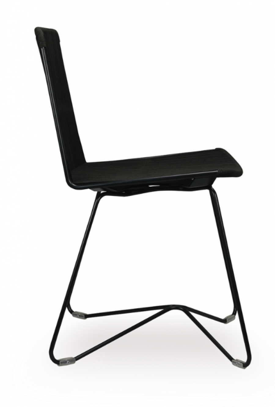 Mobile String Sled Chair /Polished Chrome Sled Frame Standard / Painted Black Frame Available / Cotton Wrapped Polyester Strings For Shell / Upcharge for Additional Wood Stain Finishes / Ideal For Meeting Rooms, Conference Venues and Collaboration Areas