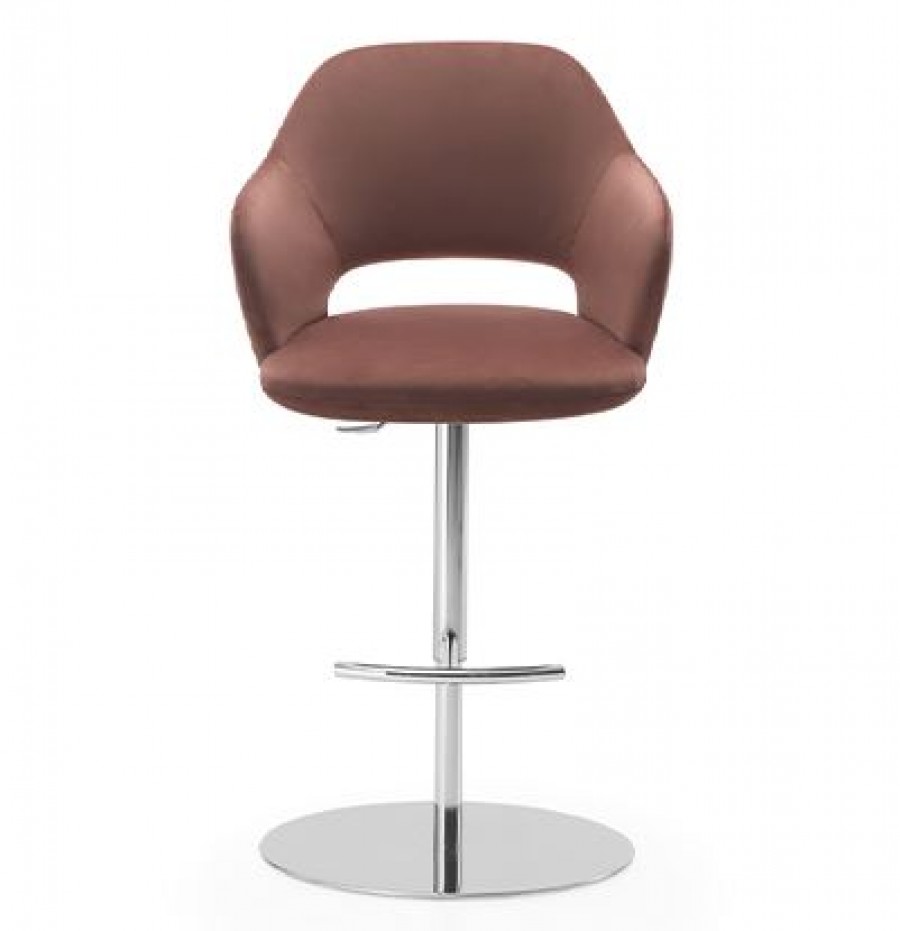 Monad Disc Bar Stool / Polished Chrome Base Finish Only / Flat Disc Swivel Base / Integrated Foot Rest / Gas Height Adjustable / Designed for Contract Use / Moulded Polyurethane Shell With Integrated Arms / Slot In Back Of Shell For Added Detail / Fully Upholstered / Upcharge For Two Tone Upholstery / Ideal For General Office Areas, Meeting Rooms, Informal Meeting, Social Hubs, Collaboration Areas And Conference Areas