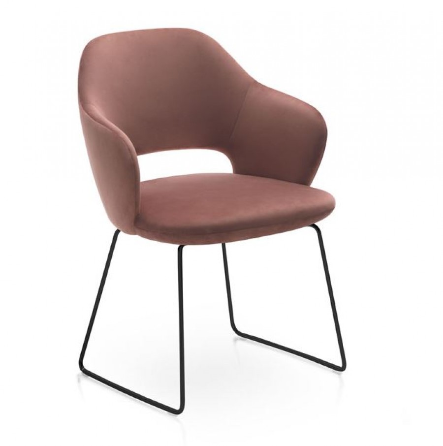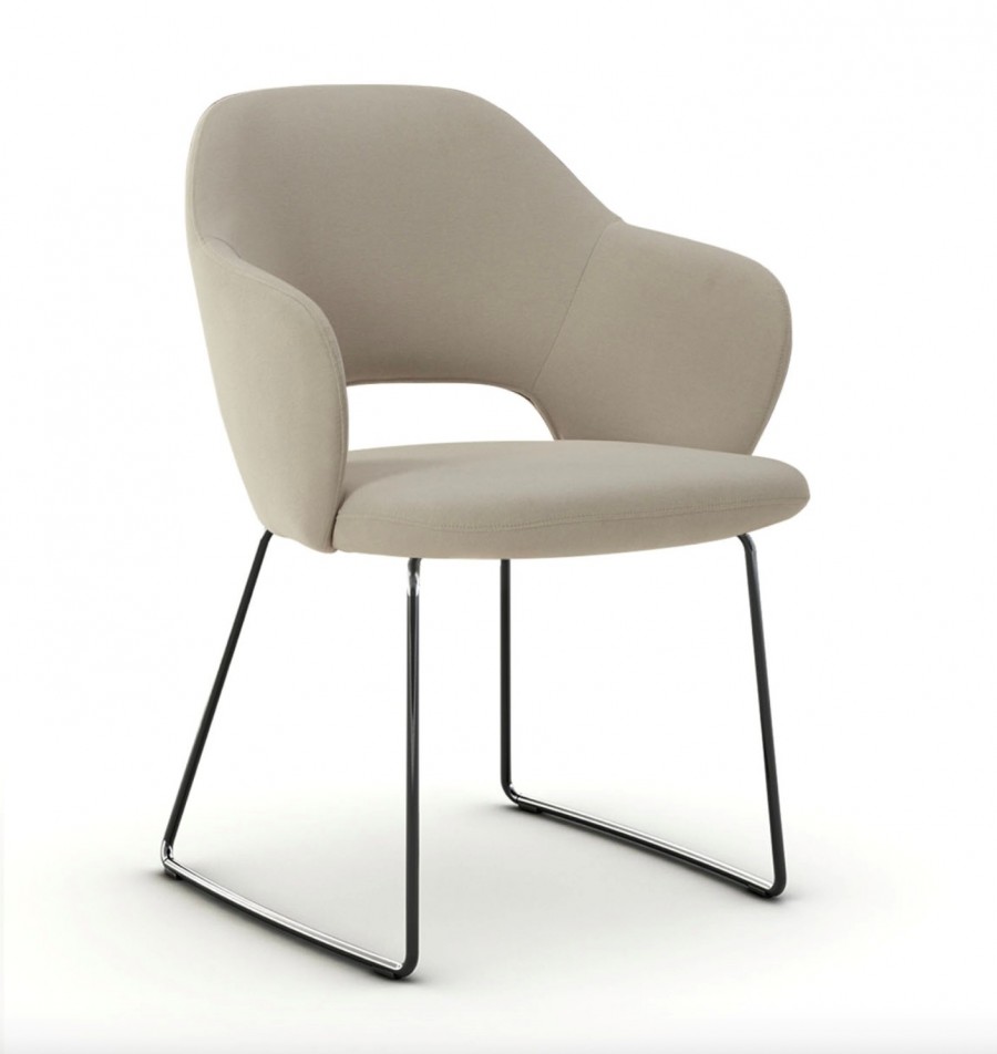 Monad Sled Arm Chair / Painted Black Or Polished Chrome Base Finishes Only / Rodded Sled Tubular Frame / On Glides / Multi Purpose Chair / Designed for Contract Use / Moulded Polyurethane Shell With Integrated Arms / Slot In Back Of Shell For Added Detail / Fully Upholstered / Upcharge For Two Tone Upholstery / Ideal For General Office Areas, Meeting Rooms, Informal Meeting, Social Hubs, Collaboration Areas And Conference Areas