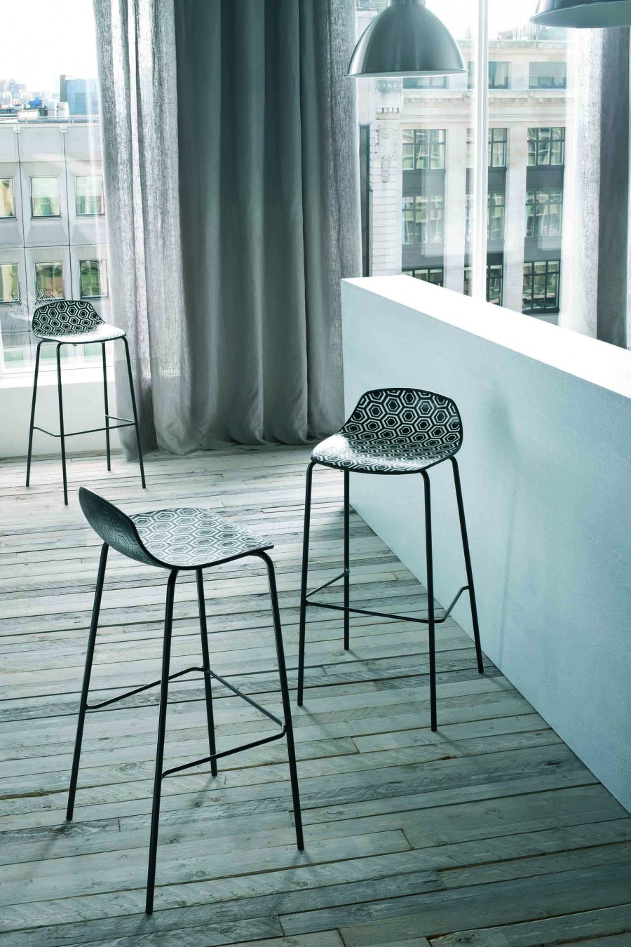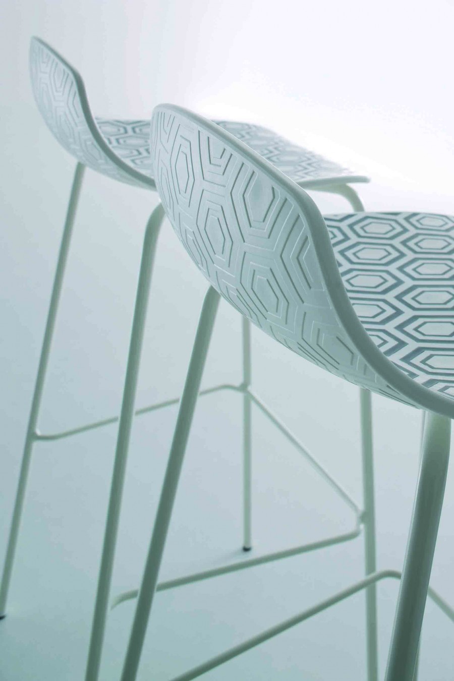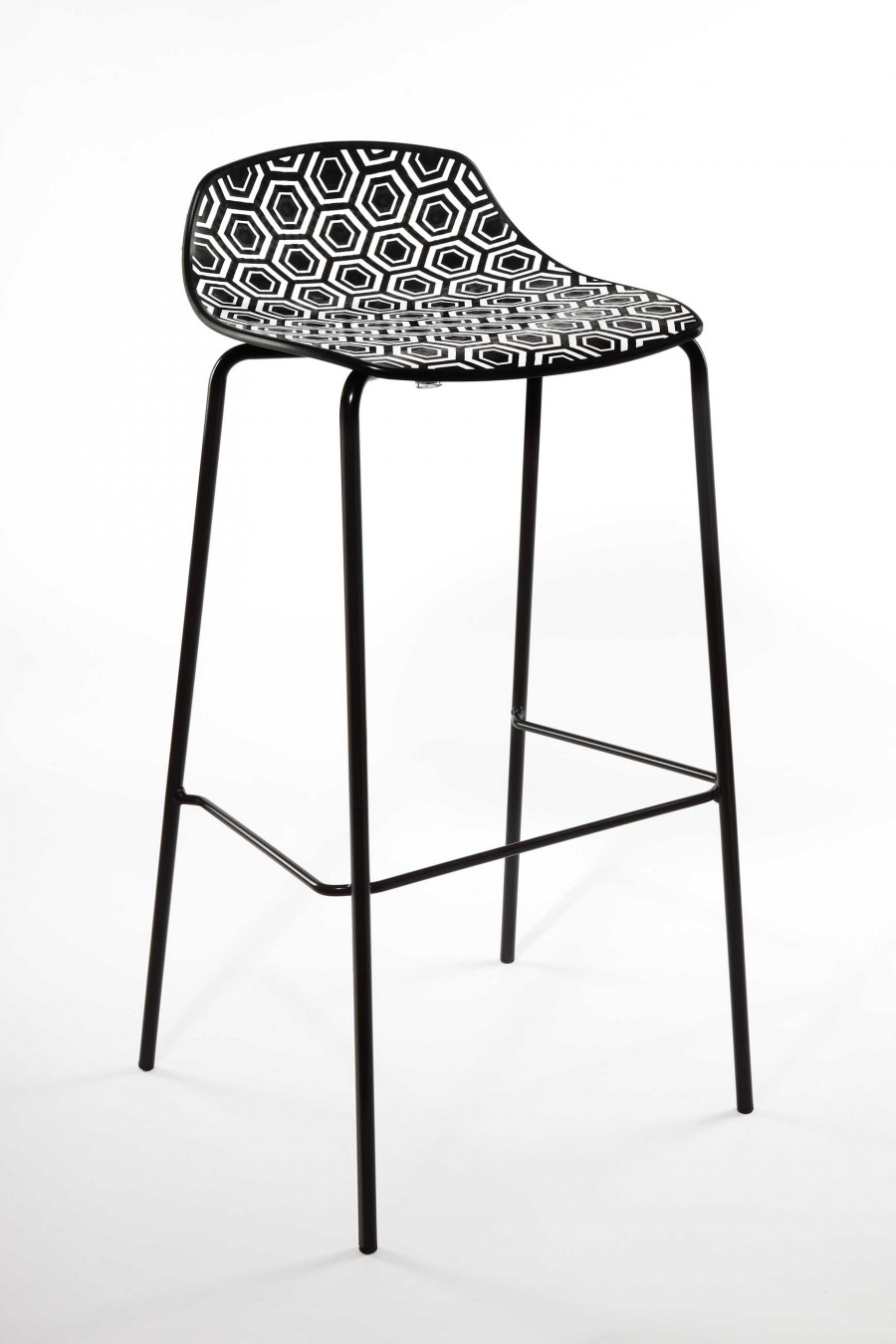 Morocco 4 Leg Counter Height and Bar Height Stools / Multi Purpose / Designed for Contract Use / Polished Chrome Round Tube Frame Standard / Black Or White Finish Non Cost Option / Intergrated Metal Protective Foot Rest / Polypropylene Shell / Moroccan Inspired Pattered Design In A Range Of Colour Options / Ideal for All Hospitality Applications, Coffee Shops, Resturants, Bistro's and Hotels.