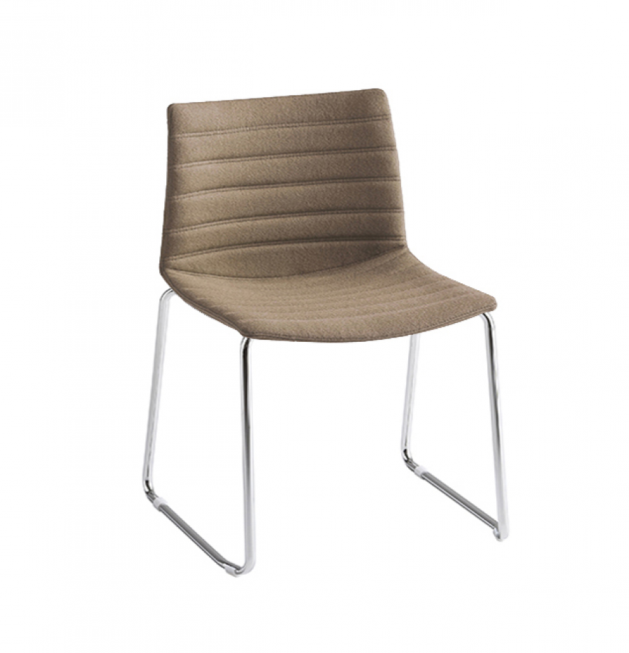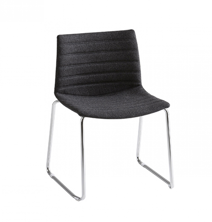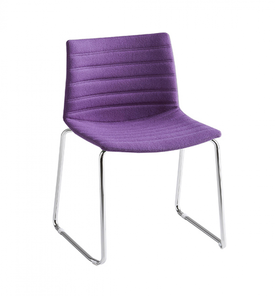 Pontiac Corporate Sled / Multi Purpose Chair / Designed for Contract Use / Polished Chrome Round Tube Frame Standard / White Non Cost Option / On Glides / Stackable / Upcharge Dolly / Polypropylene Shell / Fully Upholstered / Horizontal Stitching Lines Standard / Available In A Wide Choice Of Fabric and Leather Options / Ideal for General Office Areas including Meeting Rooms, Social Hubs, Collaboration Areas, Hotel Bedrooms, Universities and Dining Applications