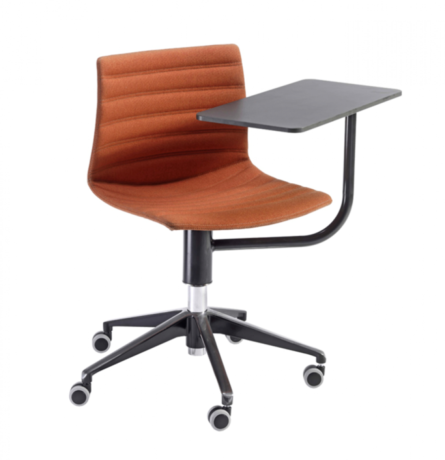 Pontiac Corporate 5 Star With Swivel Writing Tablet Arm / Multi Purpose Chair / Designed for Contract Use / Black 5 Star Swivel Base Only / On Castors / Gas Height Adjustable / Polypropylene Shell / Fully Upholstered / Horizontal Stitching Lines Standard / Black Only Writing Tablet / Writing Tablet Swivels Left To Right / Available In A Wide Choice Of Fabric and Leather Options / Ideal for General Office Areas including Meeting Rooms, Social Hubs, Collaboration Areas, Hotel Bedrooms, Universities and Dining Applications