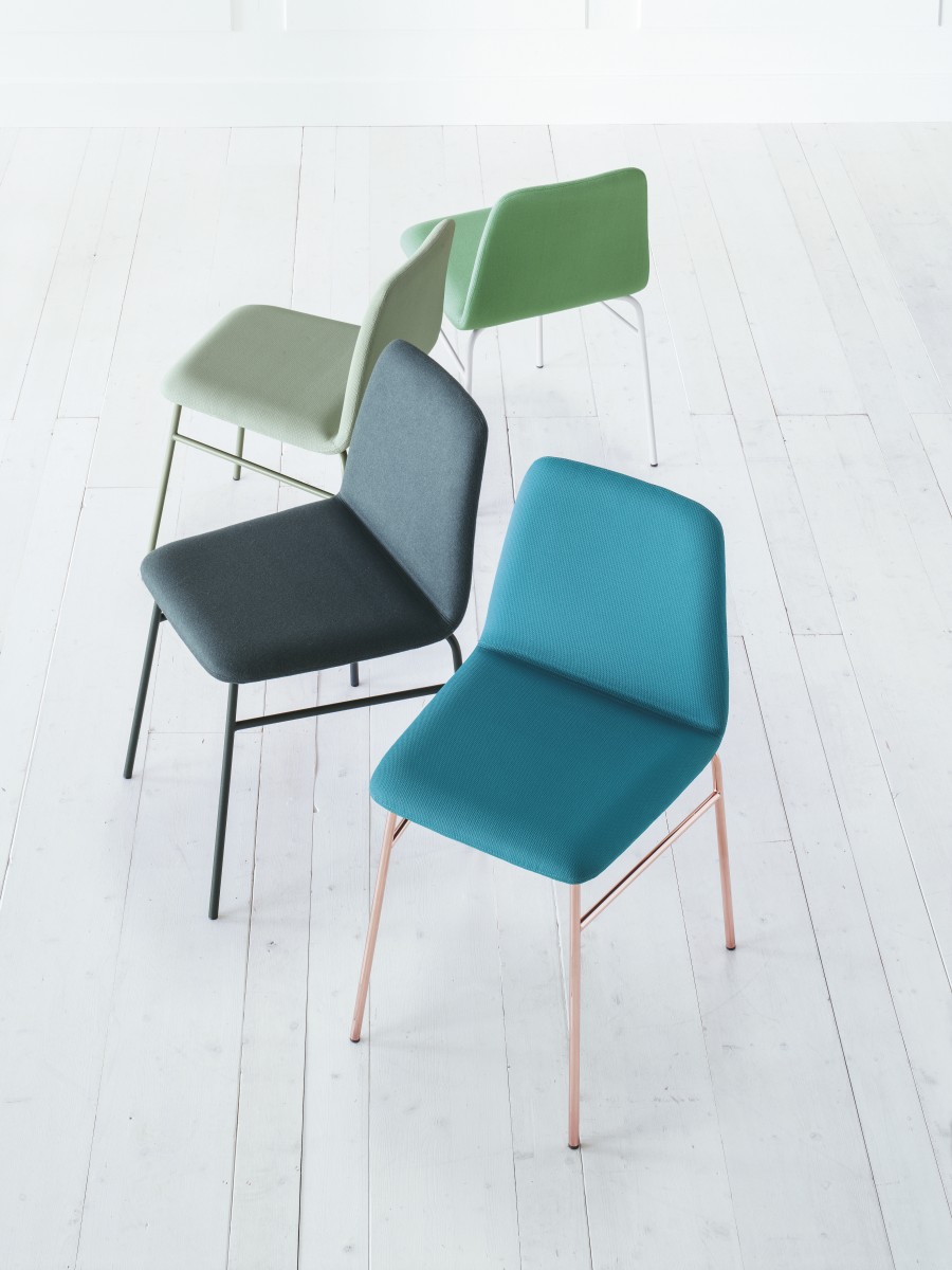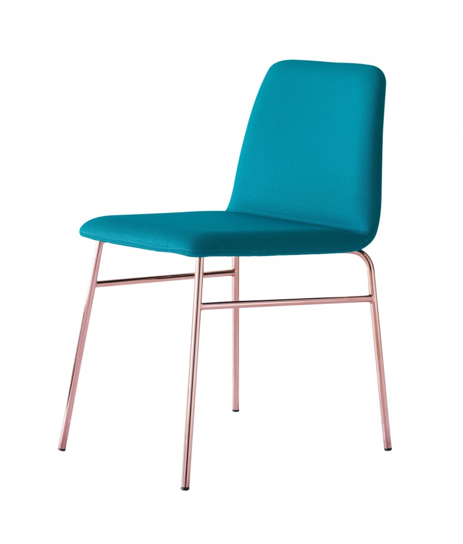 Prairie Side Chair / Plywood Shell Fully Upholstered / Wide Choice Of Fabrics Or Leathers Available / Round Tubular Frame / On Glides / Painted Finishes Or Polished Finishes Available / Braced On Sides For Added Strength And Detail / Ideal For All Work Place Areas And Hospitality Venues