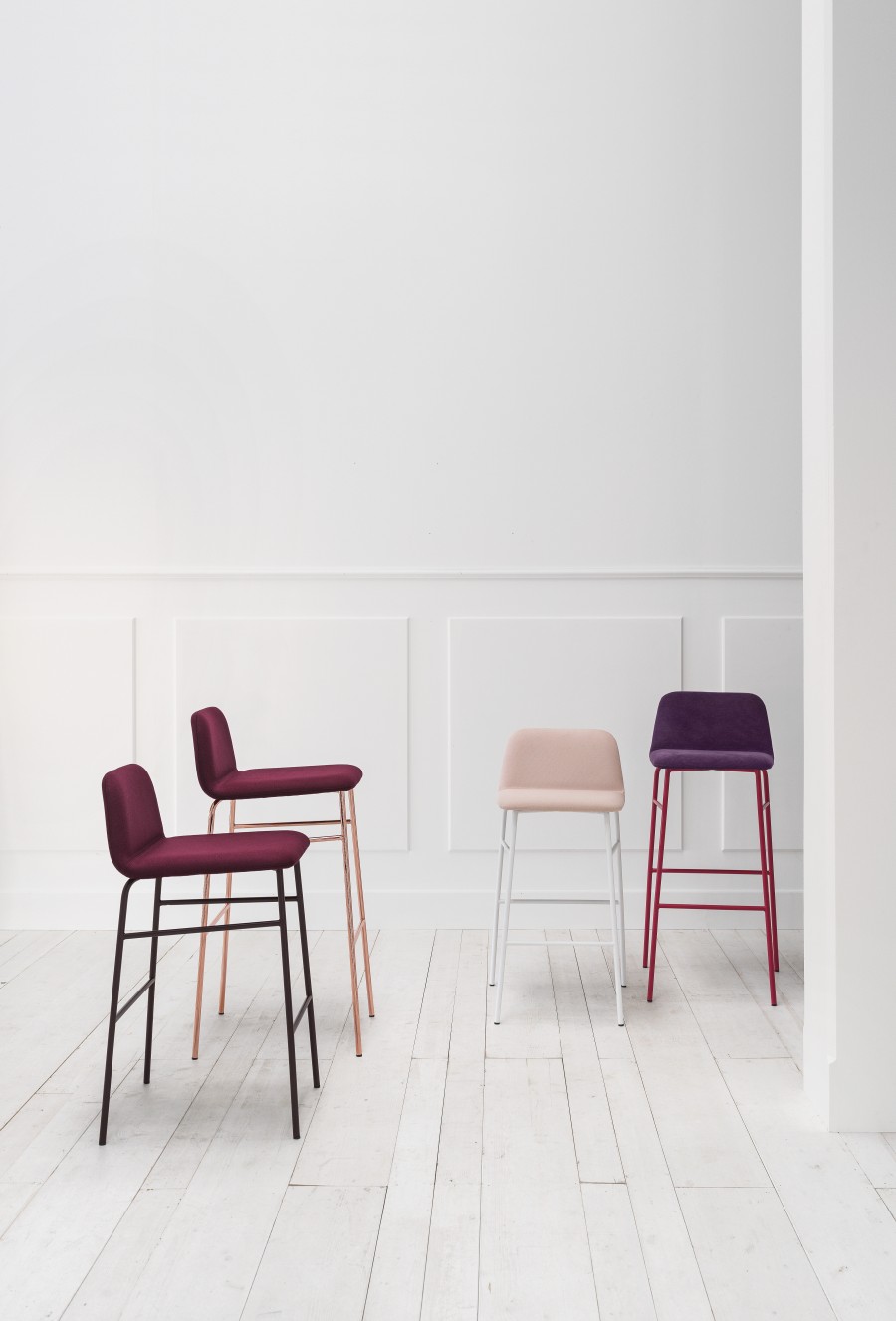 Prairie Bar Stool / Plywood Shell Fully Upholstered / Wide Choice Of Fabrics Or Leathers Available / Round Tubular Frame / On Glides / Painted Finishes Or Polished Finishes Available / Braced On Sides For Added Strength And Detail / Integrated Foot Rest / Ideal For All Work Place Areas And Hospitality Venues