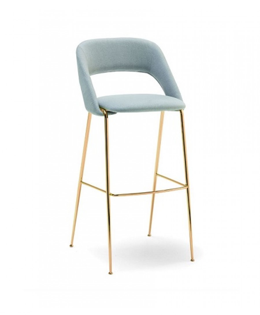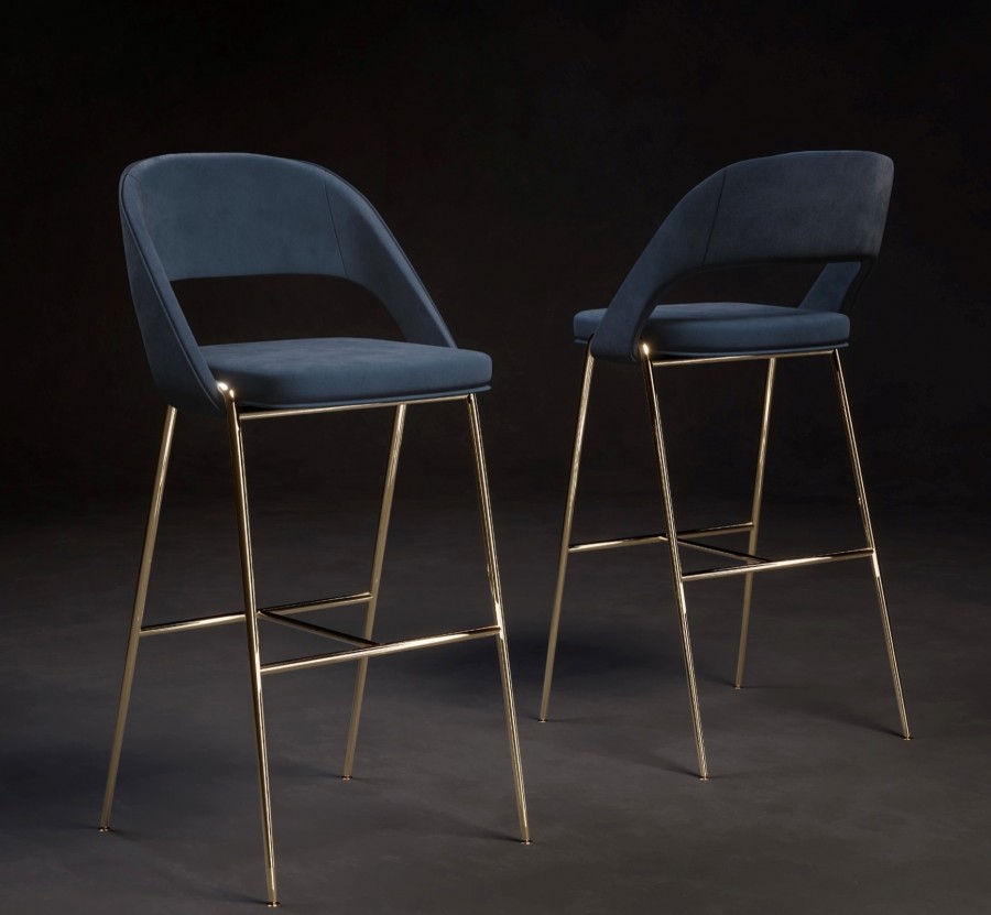 Prive 4 Leg Counter Height Stool And Bar Stool / Metal Round Tubular Legs Painted Frame Standard / Upcharge For Brass Or Polished Chrome Painted Finishes On Frame / On Glides / Integrated Foot Res / Fully Upholstered Shell Standard / Wide Range Of Fabrics Available / Slot In Back For Added Detail / Ideal for Bars, Commercial Restaurants, Cafes and Modern Day Workplace