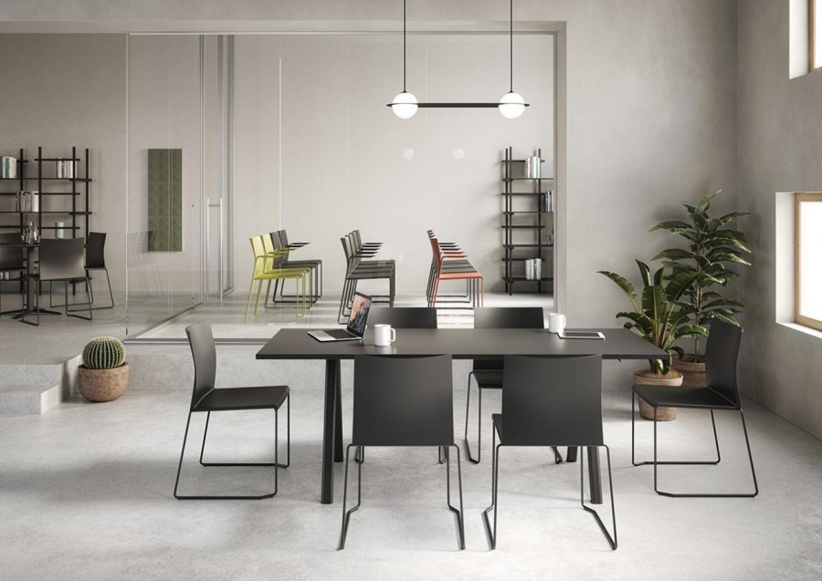 Cadet Collection. High Density Stacking Chair With Integrated Anti Panic Table / Polypropylene Seats and Back / Available in 7 Colour Options / Upcharge for Fully Upholstered Seat / Can be Upholstered in Fabric Vinyl or Leather / Rodded Metal Frame / On Glides / Polished Chrome Frame Standard / Upcharge for Matching Paint Finishes to Match Polypropylene Finishes / Upcharge for Detachable and Removable Anti Panic Table / Stackable 20 on Floor / Stackable 50 in Dolly / Upcharge for Linking / Upcharge for Dolly / Ideal For Collaboration Areas or General Office Areas, Meeting Rooms, Educational Use, Hotels and Conference Areas