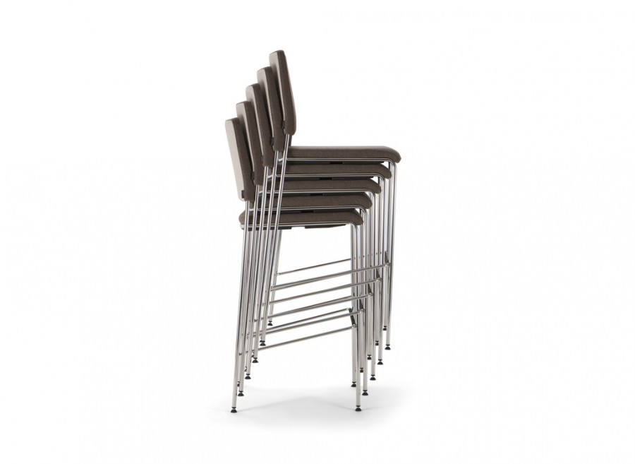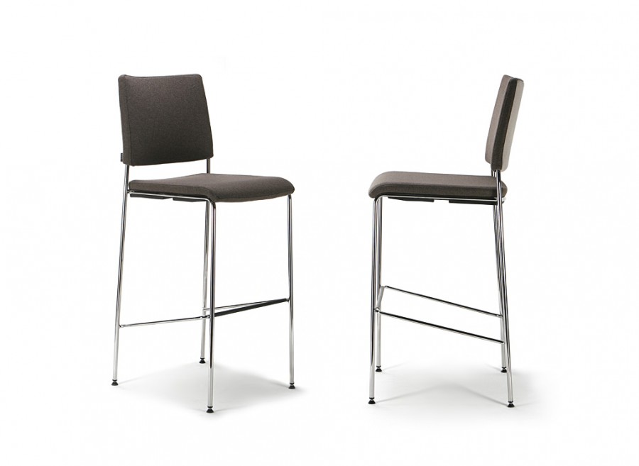 Celeste Bar Height Stool / No Arms / Polished Chrome Round Tube STD Only / Braced on Front & Sides With Intergrated Footrest / On Glides / Fully Welded Frame / Well Padded Seat & Back / Fully Upholstered Seat & Back in Fabric, Vinyl or Leather / Stacks x 5 Floor / Upcharge Linking & Dolly / Ideal For Banking Environments / Hotel Conference & Banquette Venues / Car Dealerships / General Visitor Chair