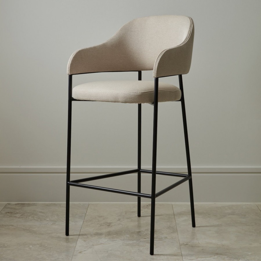 Magnum Counter and Bar Height Stool / Round Tubular Metal Frame black painted standard / Upcharge for polished brass frame / Fully welded frame / Braced under seat for heavy contract use / Nylon Glides / Well padded seat and curved back with integrated arms / High back for excellent back support / Can be upholstered in fabric vinyl or leather / Upcharge for two-tone upholstery / Integrated footrest braced all round / Versatile Comfortable stool for restaurants, bar areas.
