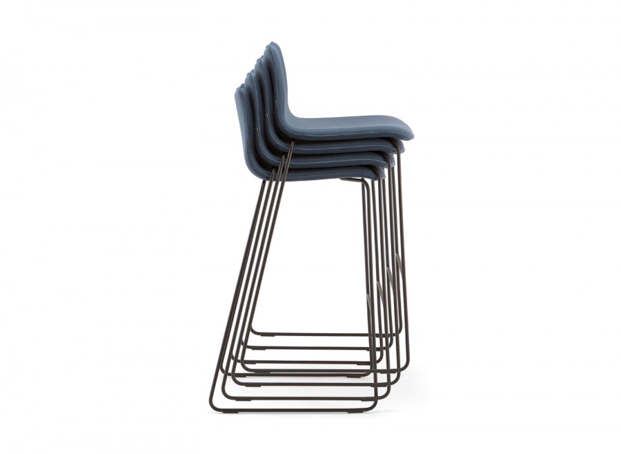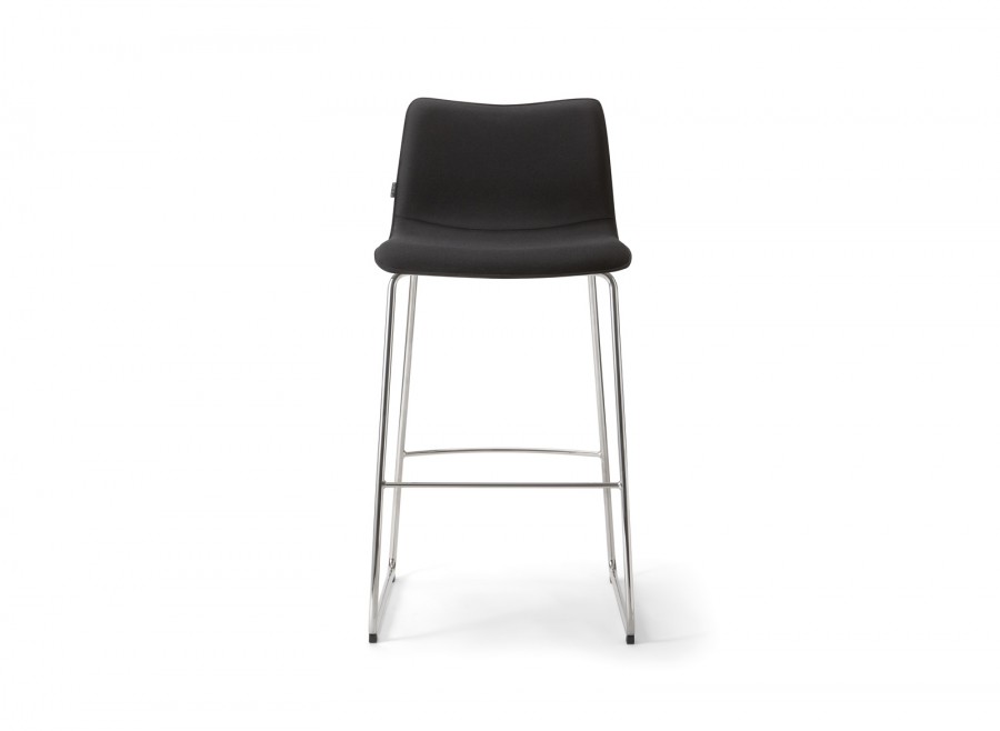 Moxy Collection : Stool Sled Legs/ Rodded Metal Frame on Nylon Glides / Polished Chrome Standard / Upcharge for Black or White Frame / Plywood Shell / Fully Upholstered / Can Be Upholstered in a Wide Choice of Fabric Options, Including Vinyl, Fabric or Leather/ Stackable on Floor - 6 High / Ideal for Meeting Rooms, Breakout Spaces, Educational Spaces