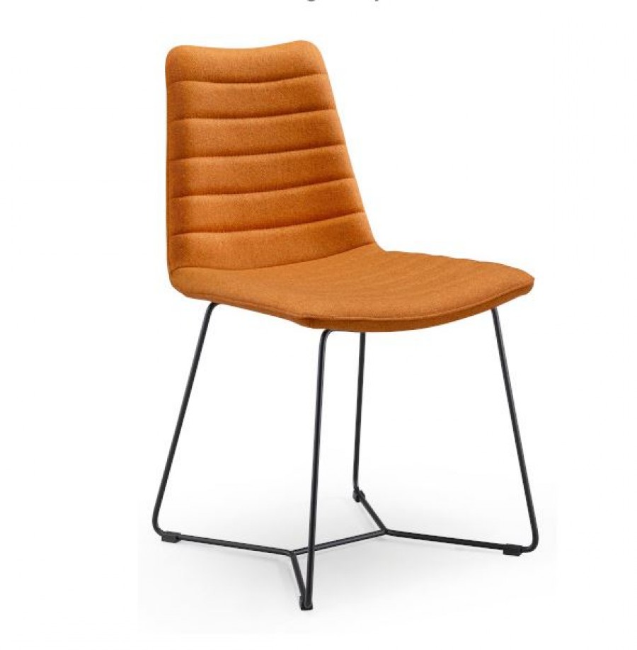 Pontiac Multi Sled Side Chair / Multi Purpose Side Chair / Designed for Contract Use / Black Or White Painted Frame Standard / Upcharge For Polished Chrome Frame / Upcharge For Additional Painted Colour Finishes / Plywood Shell Fully Upholstered / Horizontal Stitching Lines Standard On Inner And Outer Back / Available In A Wide Choice Of Fabric and Leather Options / Extra High Back For Extra Comfort When Seated / Ideal for General Office Areas including Meeting Rooms, Social Hubs, Collaboration Areas, Hotel Bedrooms, Universities and Dining Applications.