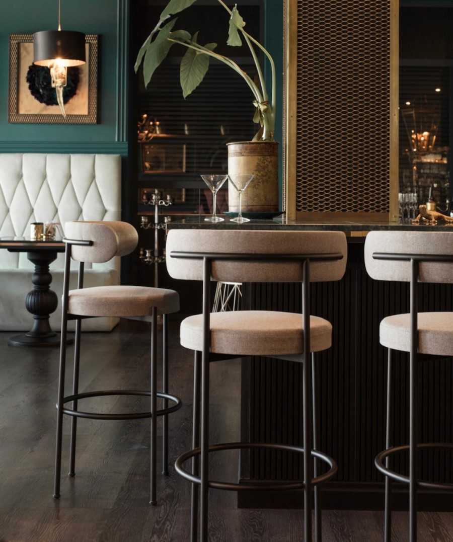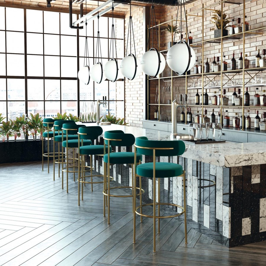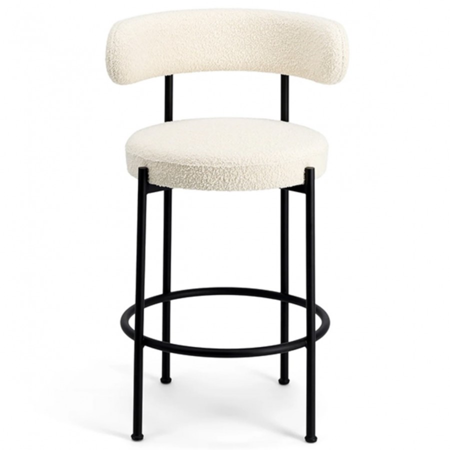 Prado Collection / Prado Stool in counter or bar height / Round Tubular Frame with Nylon Glides / Well Padded Seat and Back / Available in a Wide Choice of Paint Options / Upcharge for Polished Brass or Chrome Finish / Comfortable Curved Back / Exposed Metal Support for Added Detail / Versatile Comfortable Dining Chair for Dining Applications, Restaurants, Bar Areas