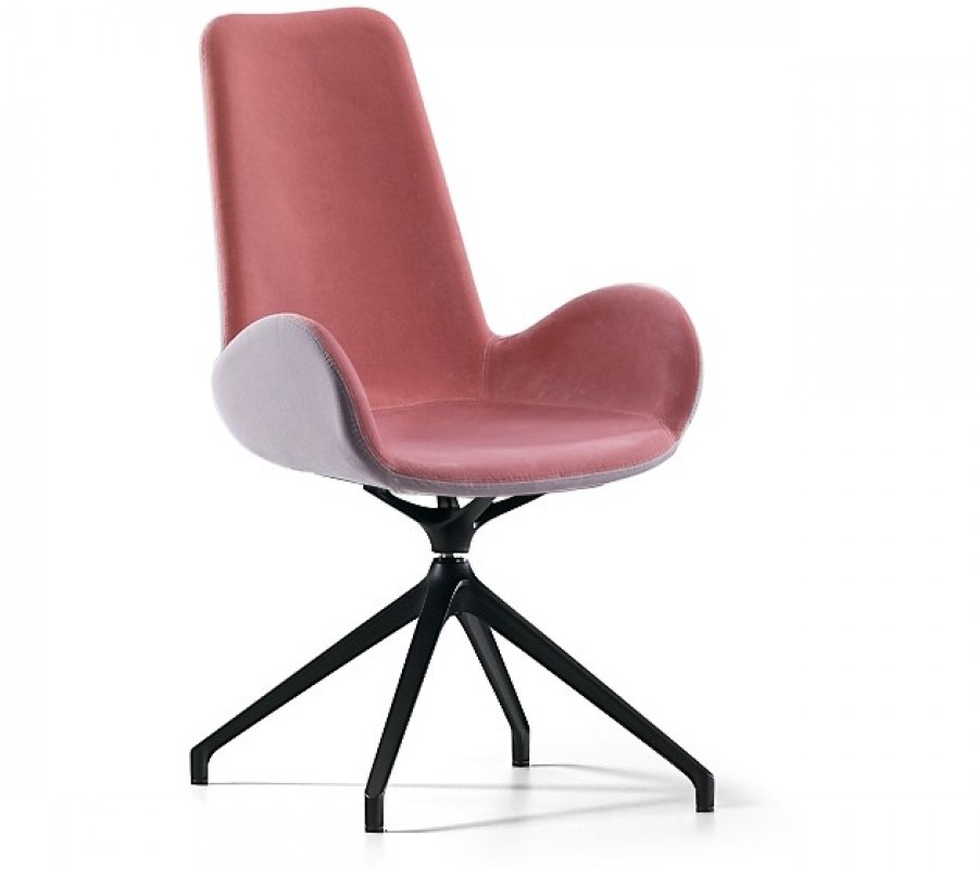 Pyramid Base Black, White Or Graphite Painted or Polished Chrome / Moulded Polyurethane Shell / Fully Upholstered / Integrated Arms / Upcharge For Two Tone Upholstery / On Glides / Swivel Motion / Available In Fabric, Vinyl Or Leather / Generous Seating Proportions / Well Padded / Excellent Comfort / Ideal For Meeting Rooms And Collaboration Areas,