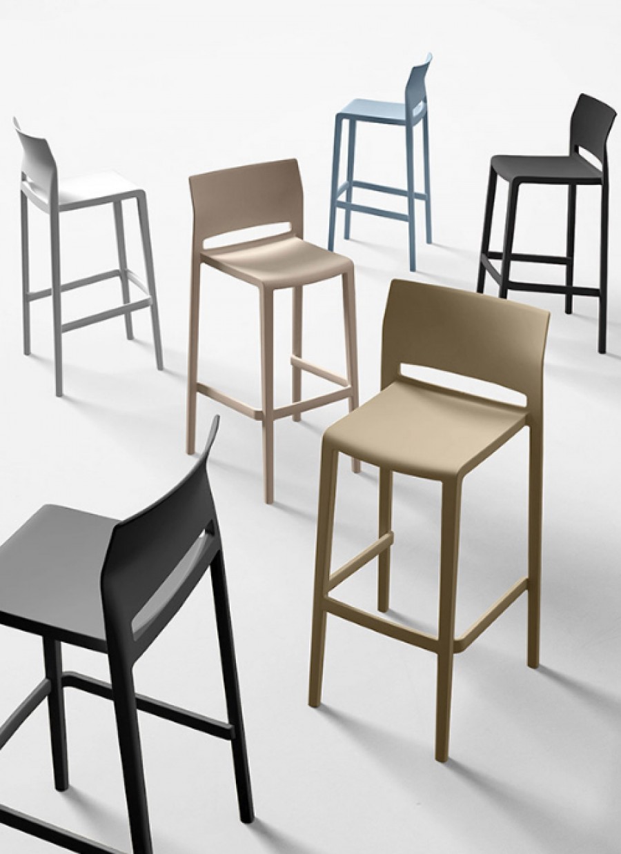 Yazoo Multi Purpose Bar Stool / Moulded Polypropylene One Piece Shell / Various Polypropylene Colour Finish / Stackable x 10 High Floor / / Matching Counter & Bar Height Stool No Arms Only / / Suitable For Indoor & Outdoor Use / Packed In Cartons x 2 In One Colour Chair & x 2 Bar Height Stools