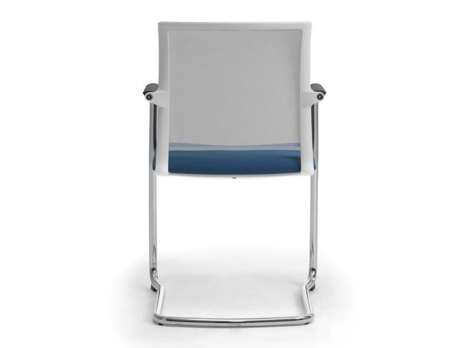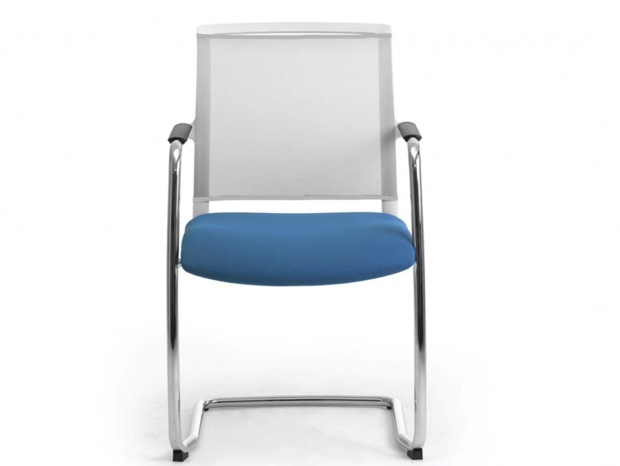 Aspen Cantilever Arm Chair / Mesh Back Black or White Colour Standard / Polished Chrome Round Tubular Frame Standard / Polished Chrome Tube Round Arms with Protective Capping / Fully Upholstered Seat / Various Choice of Fabric Available / Well Proportioned Seat for Added Comfort / Ideal for Conference, Boardroom, Hotels and General Workplace Environments
