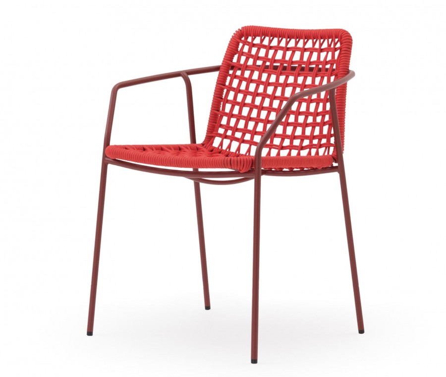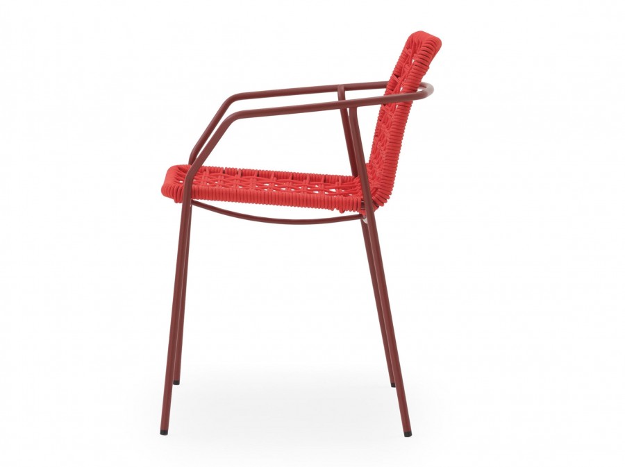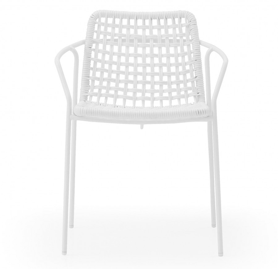 Diego Rope Arm Chair / Round Tube Metal Frame with Integrated Arms / White and Black Painted Finish Standard / Upcharge for Additional Colour Finishes / Weave of Nautical Coloured Rope / Available in a Variety of Different Colours / Stackable / Can be used Indoor and Outdoor / Ideal for all Hotels, Restaurants and Hospitality Environments.