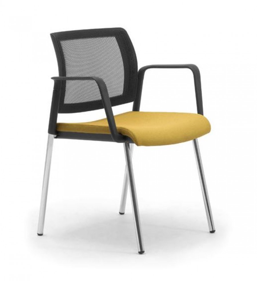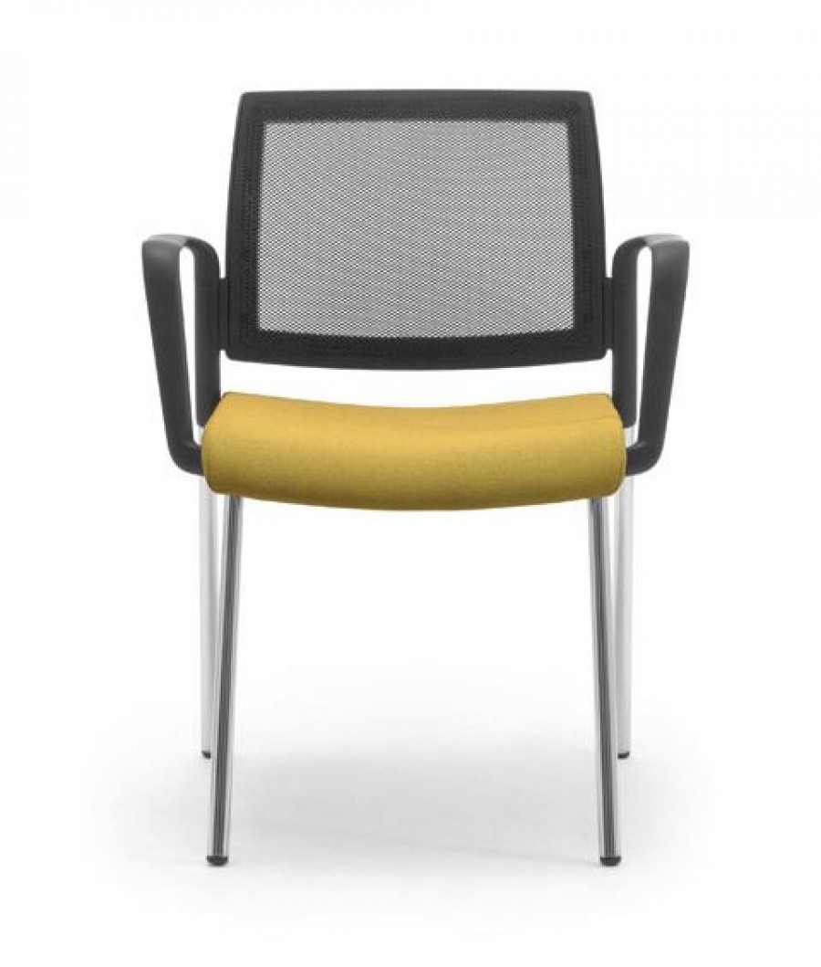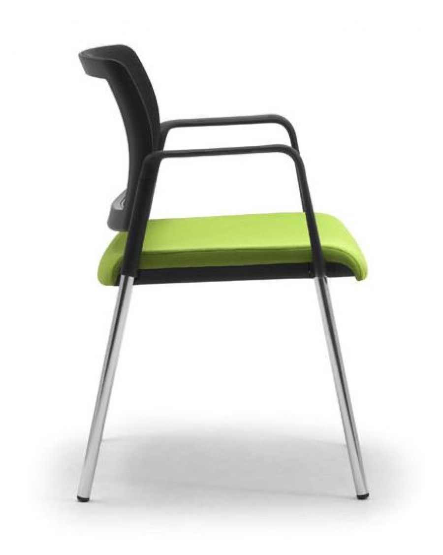 Liv 4 Leg Multi Purpose Chair / Black Mesh Standard / Polished Chrome Frame Standard / Available With Or Without Arms / Stackable X 6 On Floor / Available With Or Without Castors / Fully Upholstered Seat Standard / Upcharge For Dolly / Ideal for Collaboration, Meeting Rooms etc.