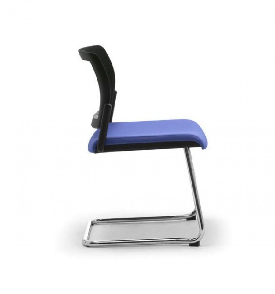 Liv Mesh Cantilever Multi-Purpose Chair / Black Mesh Back Standard / Polished Chrome Frame Standard / Available With Or Without Arms / Fully Upholstered Seat Standard / Upcharge For Dolly / Ideal for Collaboration, Meeting Rooms etc