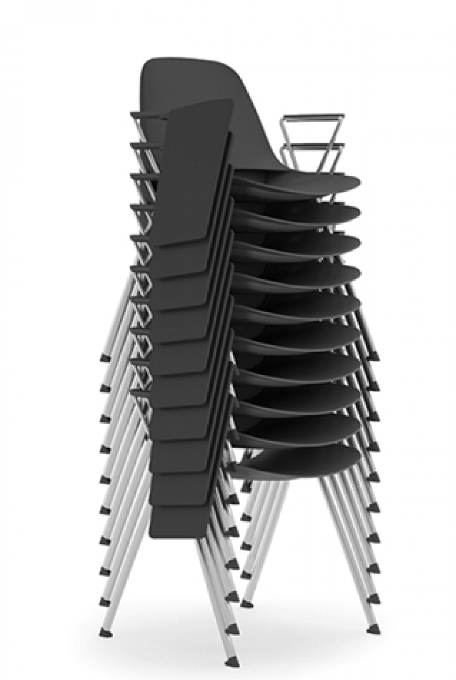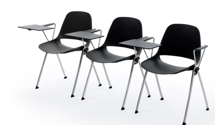 Tonica V Leg Arm Chair With Writing Tablet / Polypropylene One Piece Shell / Range Of Colours Available / On Heavy Duty Glides / Black, White or Grey Painted Colour Finishes Standard / Upcharge For Polished Chrome Frame / Arms With Protective Capping / Stackable With Arms On Floor And Dolly By 15 / Stackable With Writing Tablet On Floor And Dolly / Can Be Used Indoor Only / Upcharge For Linking / Upcharge For Dolly / Upcharge For Writing Tablet / Upcharge For Fixed Upholstered Seat Pad / Ideal for all Conferences, Seminars, Educational Environments, Work Place And Meeting Rooms
