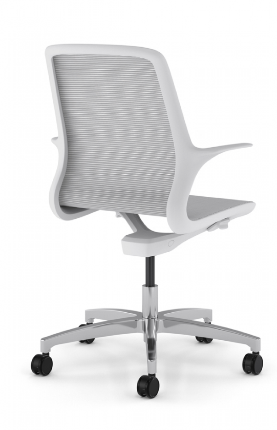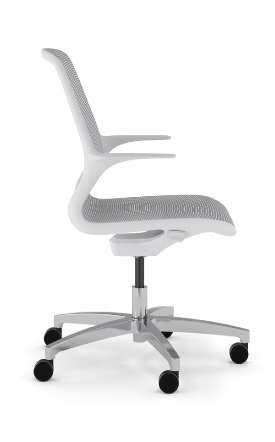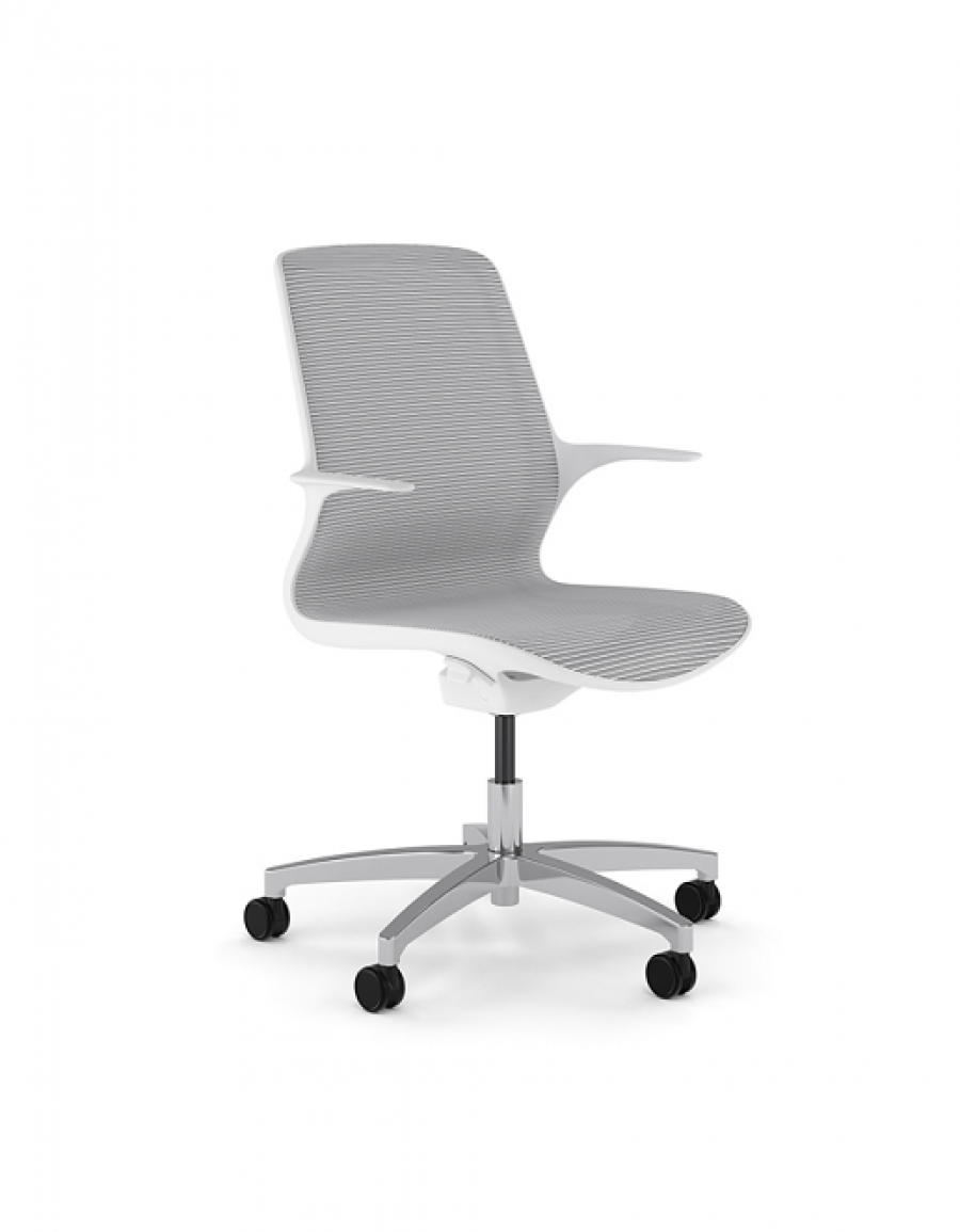 Tribeca White 5 Star Task Arm Chair / White Polypropylene Shell with Grey Mesh / Integrated Arms / Polished Aluminium Swivel Base Standard / On Castors / Gas Height Adjustable / Automatic Tension Adjustment / Well Proportioned Seat for Added Comfort / Ideal for Conference, Boardroom and General Workplace Environments