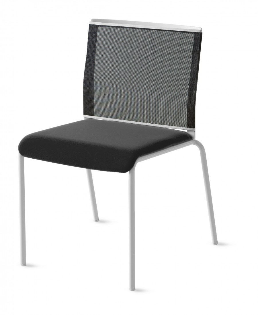 Zeni Side Chair / 4 Leg Round Tubular Frame / Black or White Painted Finish Standard / On Glides / Fully Upholstered Seat In A Wide Choice Of Fabrics / Mesh Back In Various Colour Finishes / Stackable / Upcharge For Dolly / Upcharge For Castors / Ideal for Conference Rooms, Boardrooms and General Workplace Environments