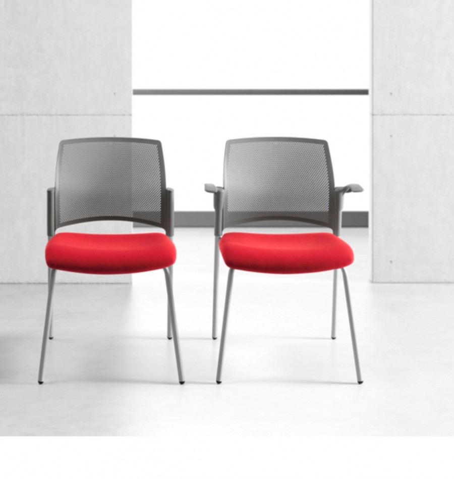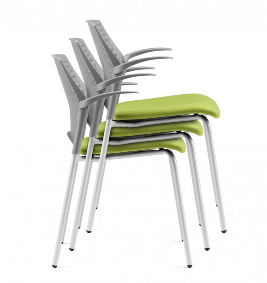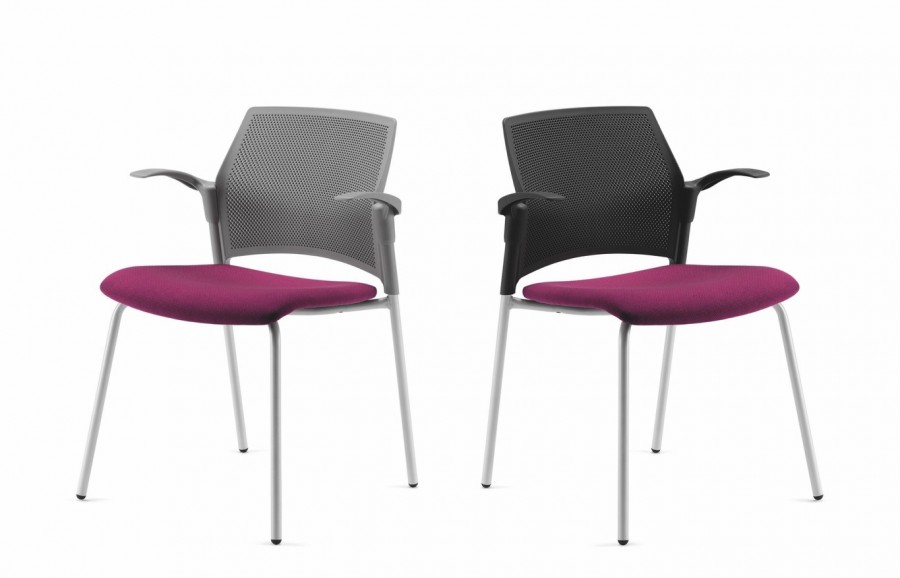 Lincoln Multipurpose Armchair / Polypropylene perforated back / Available in black, white or grey colour finish / Fully upholstered seat / Wide choice of fabric or vinyl / 4 Legged round tube frame fully welded / Silver or black finish / Integrated arms / Stackable / On nylon glides / Stackable / Ideal for collaboration areas, conference areas and the workplace.