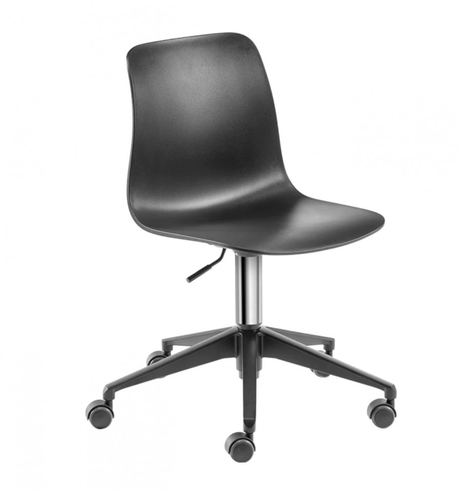 Mojo task chair / One piece polypropylene shell / Black painted aluminum 5 star base standard / Upcharge for polished aluminum / On castors / Swivel motion / Gas height adjustable / In a choice of polypropylene shell finishes / Also available as fully upholstered in a choice of either fabric or vinyl / Ideal for meeting rooms, educational use and universities.