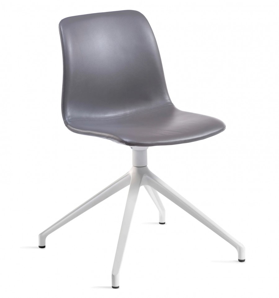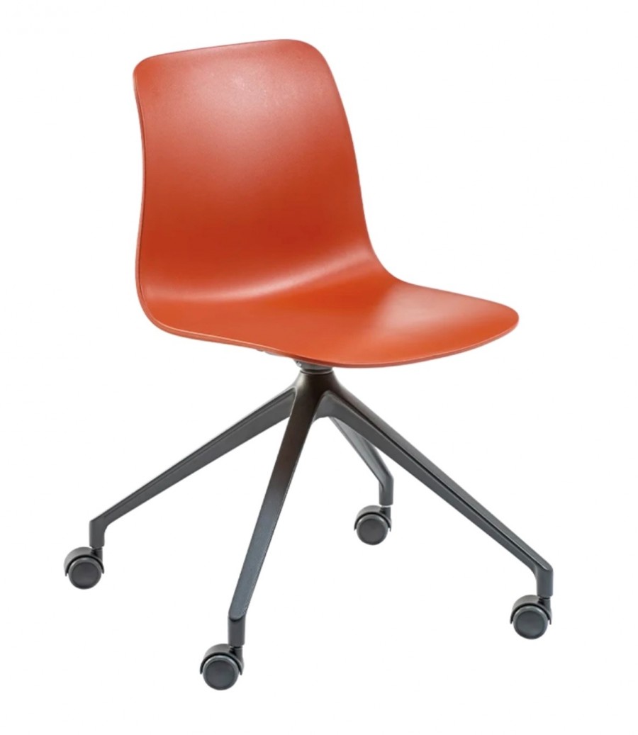 Mojo Pyramid chair / One piece polypropylene shell / Painted aluminum 4 star pyramid base black or white only / Upcharge for castors / Swivel motion / In a choice of polypropylene shell finishes / Also available as fully upholstered in a choice of either fabric or vinyl / Ideal for meeting rooms, educational use and universities.