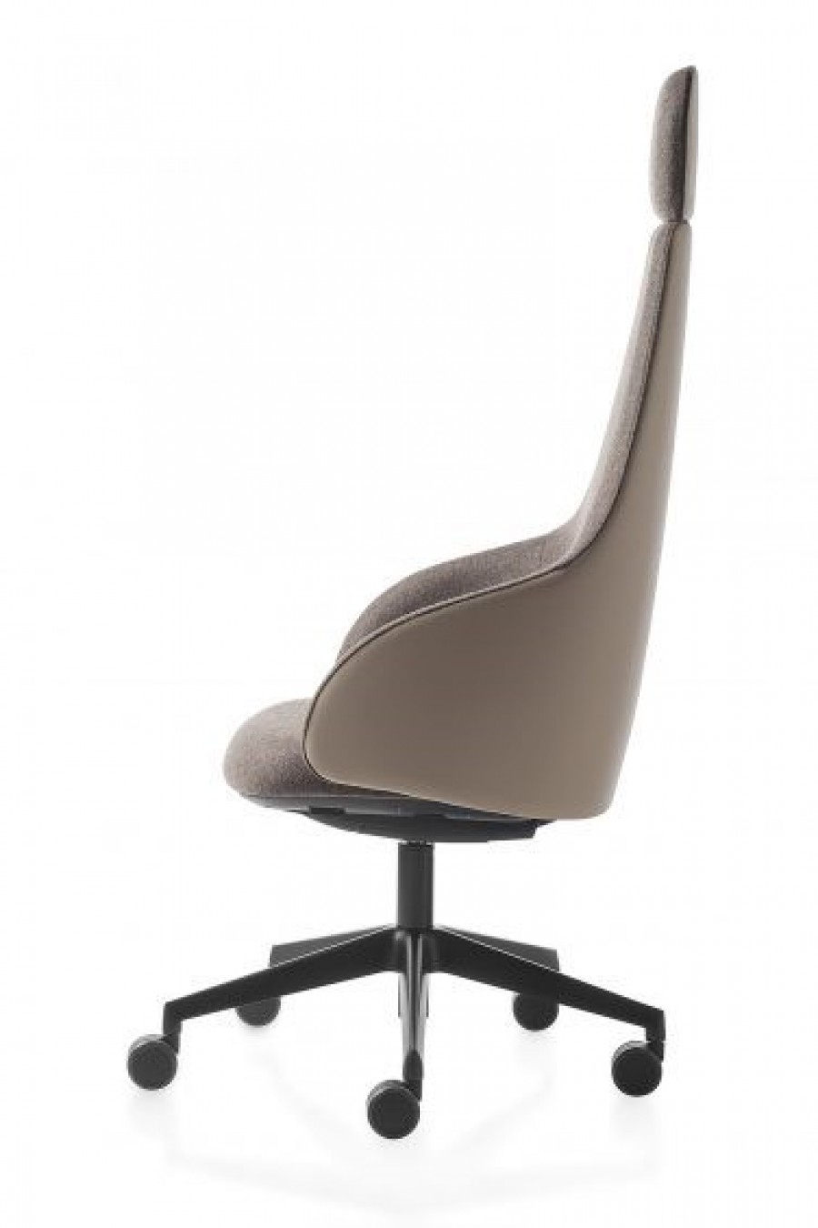 Moulded Polyurethane Shell / Fully Upholstered / Available in Fabric, Vinyl or Leather / Wide Choice of Colour Finishes / Integrated Curved Arms Generous Seating Proportions/ Excellent Support For Long Periods Seated /  Upcharge For Two Tone Upholstery / Gas Height Adjustable / Swivel Base / Synchro Mechanism / Seat Slide For Added Comfort / Polished Aluminium Base Standard / On Castors / Upcharge For Black Painted Base / Ideal For High Profile Meeting Room Areas And Executive Offices,