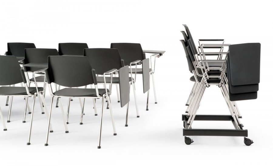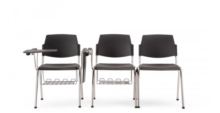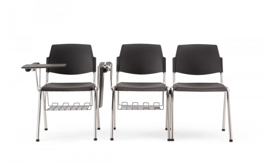 UNI Multi Purpose Chair / Polished Frame STD / Black, White, Grey Painted None Cost Option / Anti UV Treated Polypropylene Seat & Back Available in Various Colour Finishes / Upcharge for Upholstered Seat and Back / Upcharge for Mesh Back / Round Tube Fully Welded Frame For Heavy Contract Use in the Workplace / On Nylon Glides / Available With or Without Arms / Heavy Duty Arms / Stackable x 20 High Floor & Dolly / Upcharge Writing Tablet / Unique Stacking With Writing Tablet / Writing Tablet Available Left Or Right Handed When Seated / Upcharge Unique Linking Capability on Arms / Upcharge Book Holder Under Seat / Cost Effective Option For Large Scale Projects / Ideal For Seminar & Training Environments / Education & Conference Venues