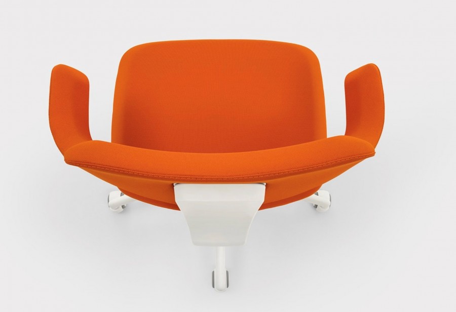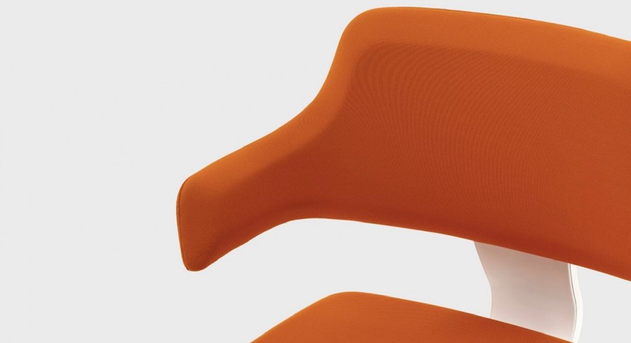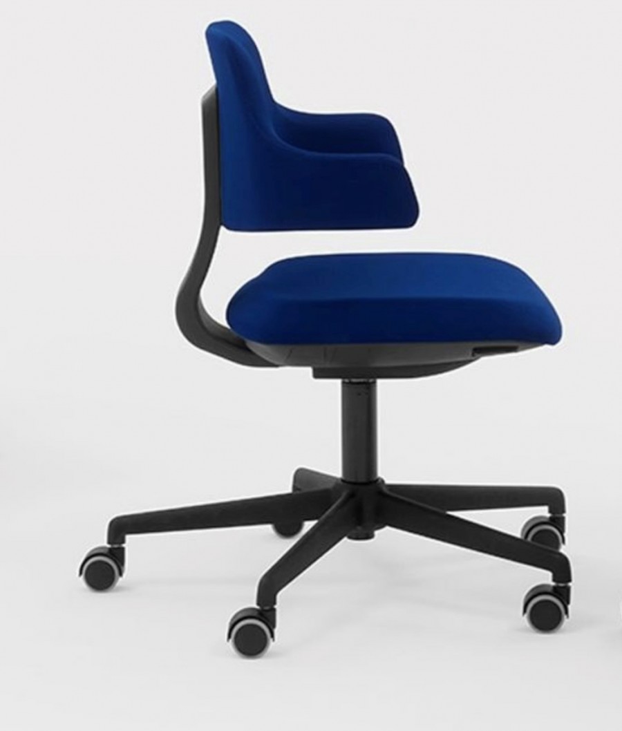 Vaso Task Chair / Unique back with curved integrated arms / Fully upholstered seat and back in a wide choice of fabric or vinyl finishes / Available in black or white polypropylene finishes / Syncronized back mechanism / Gas height adjustable / Swivel mechanism / Nylon five star base / On rubber castors / Generous seating proportions / Offers excellent back support / Ideal for all workplace environments, meeting rooms and collaboration areas.