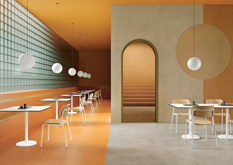 Zeru Multipurpose side chair / Plywood seat and back only in a choice of colour finishes / Round tube metal frame in a choice of painted colour finishes or upcharge for polished chrome / On nylon glides / Lightweight design / Very robust for contract use / Stackable / Can be used in any public space area / Generous seating proportions / Ideal for educational use, the workplace, cafes, restaurants and conference centres.
