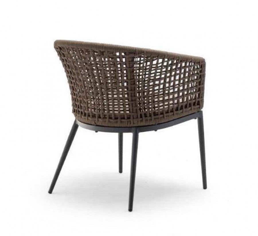Largo Arm Chair / Round Aluminium Tube Frame / Frame Painted Anthracite / Taupe Polyester Rope Shell Finish Only / Can Be Used Indoor And Outdoor / Generous Seating Proportions / Only Available In This Colour Combination / Removable Seat Cushion / OLEFIN Fabrics Are The Best Wearing Of All Outdoor Fabrics As They Dry Quickly And Are Fade And Stain Resistant / Polyester Fabric Has The Strongest Yarn Whilst Being Inexpensive And Dries Quickly / Ideal for all Hotels, Restaurants and Hospitality Environments / Only Available In Fabric Illustrated